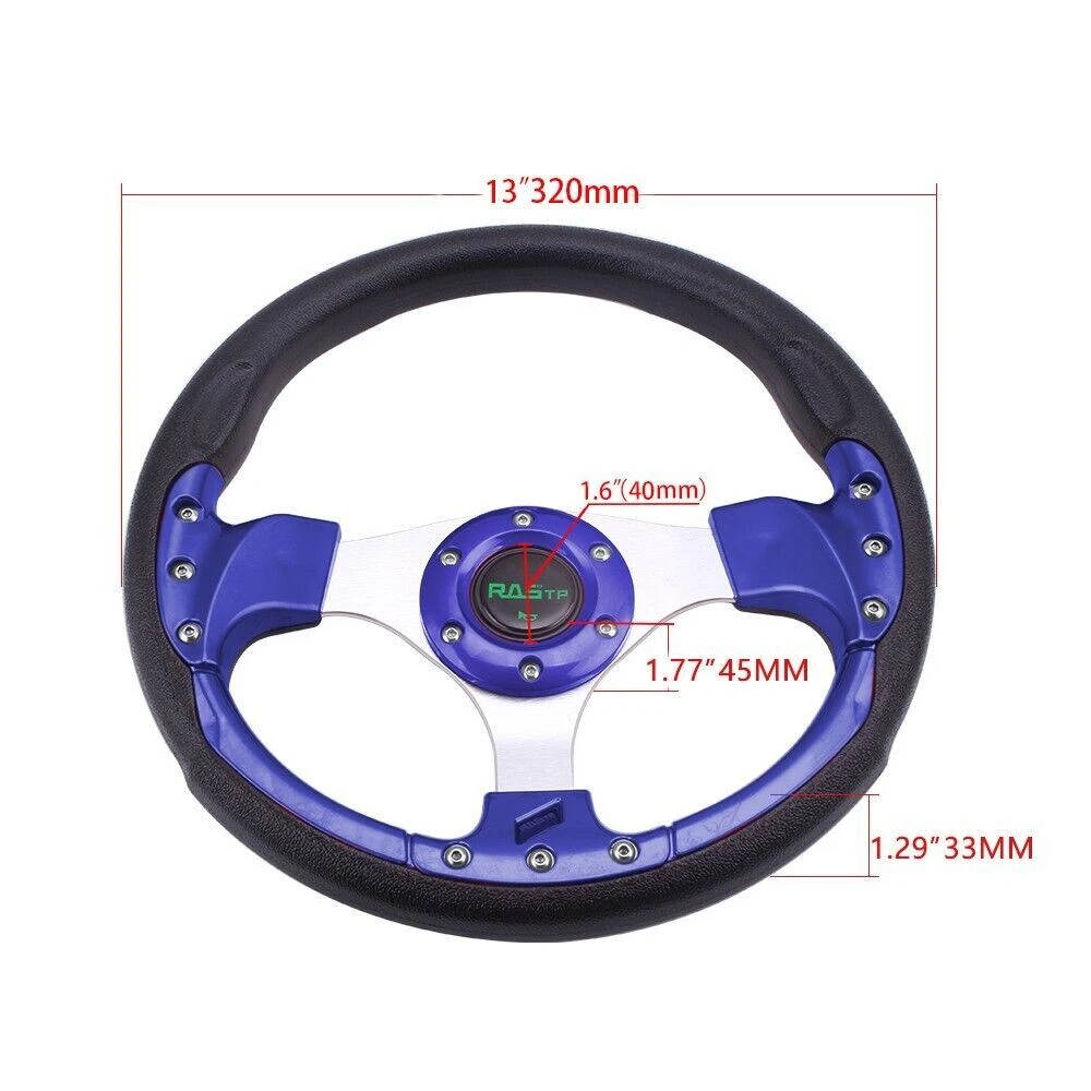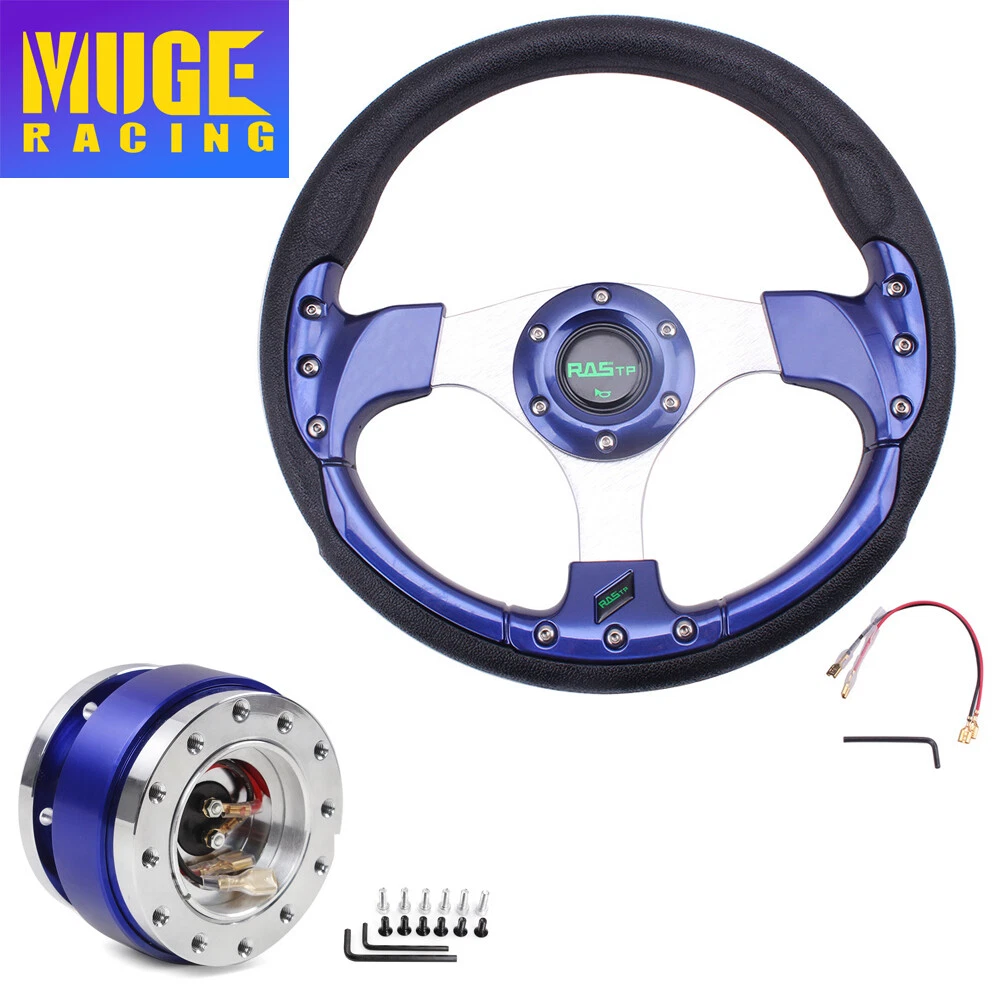 13" Blue Racing Steering Wheel with Ball Quick Release Adapter Kit+Horn Button 【Steering Wheel】 100% brand new Suitable for any car and model Easy to install Suede Leather With Black Stitching Specification: Style:Racing style Material:PU+Aluminum Diameter: 13" Steering wheel depth:1.3" Fitment:Universal 【Quick Release Adapter】 Billet aluminum body, good bearing capacity, durable in using. With 6 long screws and 6 short screws for various snap off needs, ball-lock type mechanism for best locking fit and usability. Easy to operate, direct bolt-on, fast detach allows steering wheel to be removed quickly. Push-pin security feature prevents premature unlocking, with screw-driven tools for easy locking. Compatible with 6-hole steering wheel hub kit, designed for many aftermarket racing steering wheel. Package include only a steering wheel and a quick release adapter, must be installed with hub adapter (not include, need purchase separately). PACKAGE INCLUDED: 1 x Steering Wheel Kit 1 x Quick Release Adapter Kit All items are Brand New unless stated otherwise on the listing. We sell DIY (Do It Yourself) Items with a few exceptions. We take no responsibility in teaching you how to install. Professional installation is strongly recommended. SHIPPING INFORMATION PAYMENT WARRANTY ABOUT US CONTACT US SHIPPING INFORMATION We will only ship this item to buyers by Normal Mail, please confirm your address is correct, and if you want to change the delivery address, just feel free to contact us when you purchase. Usually, we will ship the orders out and upload the tracking number within 1-2 business days(Monday to Saturday from 8:30am-5:30pm) after you complete the payment. PAYMENT We will only accept eBay payment. Please pay using eBay payment ONLY within 7 days from the date of transaction be made. WARRANTY Please inspect your order upon receipt.No damage claims will be honored after 14 days of delivery. All item we sold come with 90 days defective warranty from the date. ABOUT US We are a powerful factory producing auto parts,and we have a professional sales and after-sales team that can provide you with excellent products and services. CONTACT US For any reason you want to contact us,We aim at satisfying every visitor, no matter what kind of situation you meet with, we will be right here to serve you. Please contact our team. If you are happy with the transaction with us, leaving us an ALL-5-STAR positive feedback would be greatly appreciated. Have a good shopping.