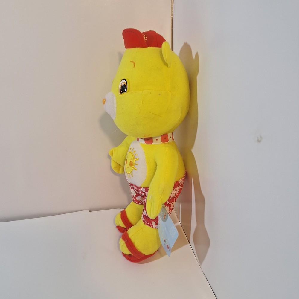 This 13" Care Bears Beach Funshine Bear in Sun Yellow is a delightful addition to any collection. Featuring the court jester crown and a retired design, this plush bear comes with a hat and is the perfect companion for all occasions. The vibrant yellow color and contemporary design make it a charming choice for fans of the Care Bears franchise. Made from a blend of polyester, plush, and cotton, this bear is sure to bring joy to both children and collectors alike.