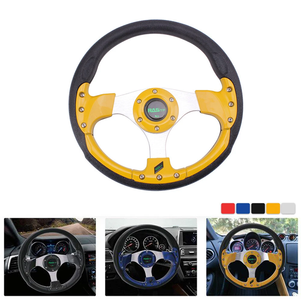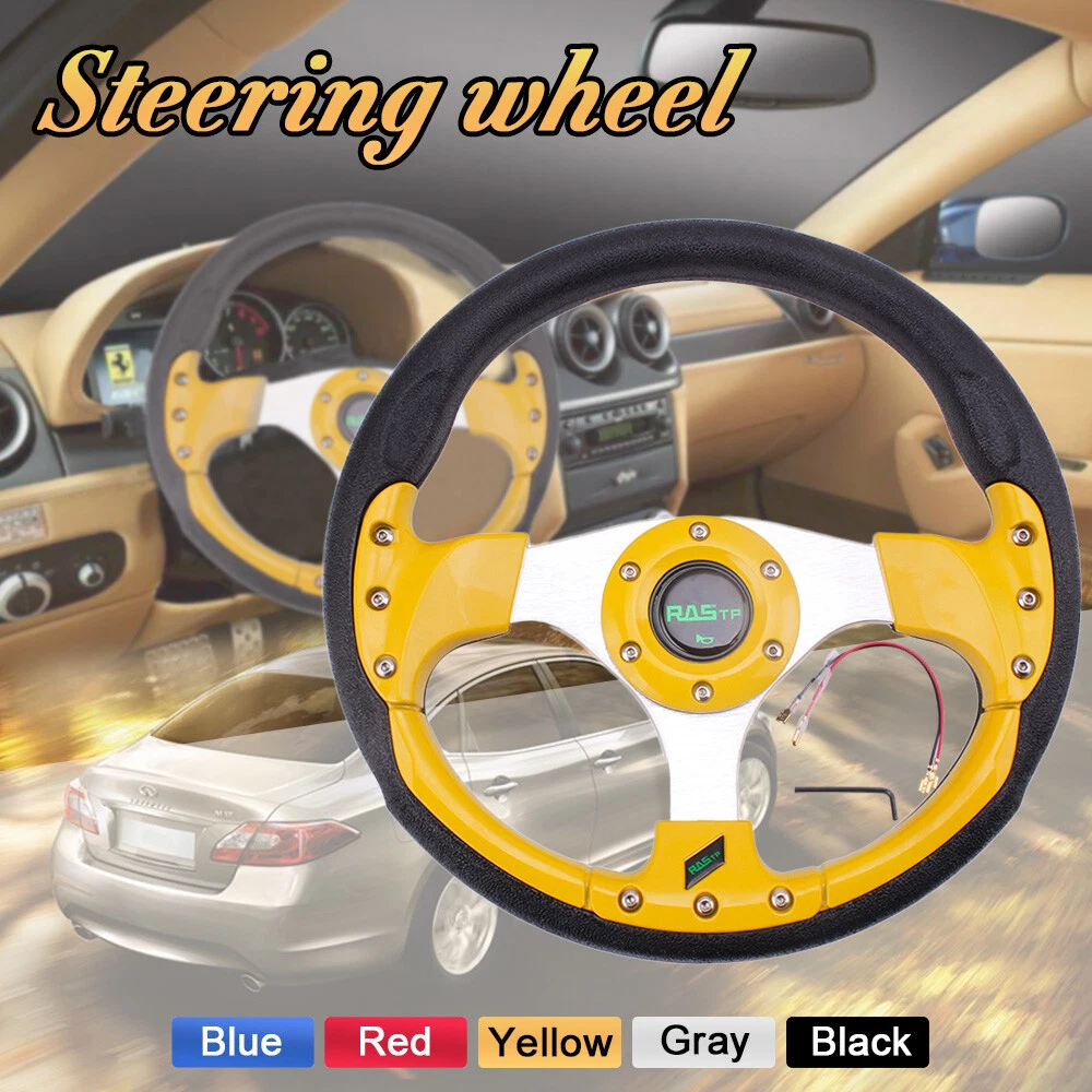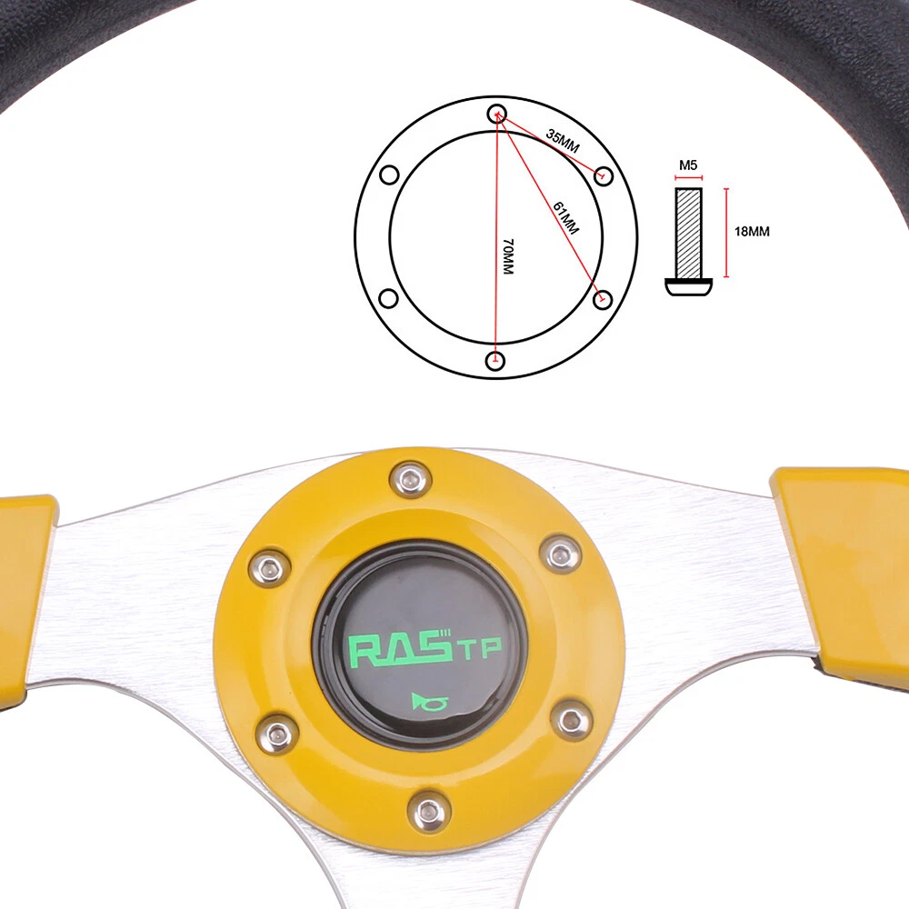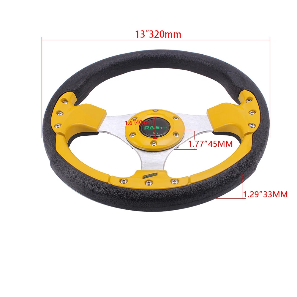 13" Gold Racing Steering Wheel with Ball Quick Release Adapter Kit+Horn Button 【Steering Wheel】 100% brand new Suitable for any car and model Easy to install Suede Leather With Black Stitching Specification: Style:Racing style Material:PU+Aluminum Diameter: 13" Steering wheel depth:1.3" Fitment:Universal 【Quick Release Adapter】 Billet aluminum body, good bearing capacity, durable in using. With 6 long screws and 6 short screws for various snap off needs, ball-lock type mechanism for best locking fit and usability. Easy to operate, direct bolt-on, fast detach allows steering wheel to be removed quickly. Push-pin security feature prevents premature unlocking, with screw-driven tools for easy locking. Compatible with 6-hole steering wheel hub kit, designed for many aftermarket racing steering wheel. Package include only a steering wheel and a quick release adapter, must be installed with hub adapter (not include, need purchase separately). PACKAGE INCLUDED: 1 x Steering Wheel Kit 1 x Quick Release Adapter Kit All items are Brand New unless stated otherwise on the listing. We sell DIY (Do It Yourself) Items with a few exceptions. We take no responsibility in teaching you how to install. Professional installation is strongly recommended. SHIPPING INFORMATION PAYMENT WARRANTY ABOUT US CONTACT US SHIPPING INFORMATION We will only ship this item to buyers by Normal Mail, please confirm your address is correct, and if you want to change the delivery address, just feel free to contact us when you purchase. Usually, we will ship the orders out and upload the tracking number within 1-2 business days(Monday to Saturday from 8:30am-5:30pm) after you complete the payment. PAYMENT We will only accept eBay payment. Please pay using eBay payment ONLY within 7 days from the date of transaction be made. WARRANTY Please inspect your order upon receipt.No damage claims will be honored after 14 days of delivery. All item we sold come with 90 days defective warranty from the date. ABOUT US We are a powerful factory producing auto parts,and we have a professional sales and after-sales team that can provide you with excellent products and services. CONTACT US For any reason you want to contact us,We aim at satisfying every visitor, no matter what kind of situation you meet with, we will be right here to serve you. Please contact our team. If you are happy with the transaction with us, leaving us an ALL-5-STAR positive feedback would be greatly appreciated. Have a good shopping.