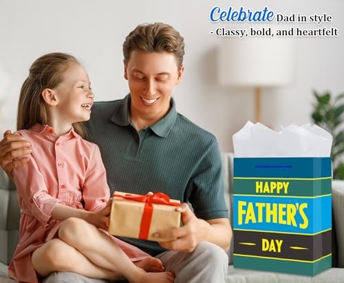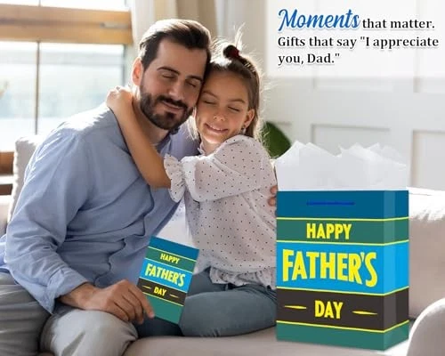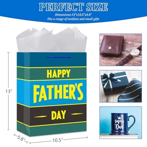 Return Policy Fast Delivery Trusted seller 13" Fathers Day Gift Bag - Large Gift Bag with Tissue Paper Father's Day Bag with Handles Fathers Day Paper Bags Happy Father's Day Gift Bag for Men Dad Stepdad Husband Grandpa Product Description Large Fathers Day Gift Bag: Fathers day bag measures approximately 10.2" wide by 13" high by 5.8" deep,and the Fathers day greeting cards size is 4x6 inches. Large Gift Bag with Tissue Paper: Fathers day bag with handles features stripes with " HAPPY FATHER'S DAY "lettering,and coordinating Fathers day card that reads "HAPPY FATHER'S DAY " ALL-IN-ONE: This fathers day paper gift bag includes 2 sheets of white tissue paper to make presents wrapping for dads quick and easy,and attached with a greeting card to tell dad how much you love or thanks to him. THANK DAD GIFT DAG: Charming gift bags and wrapping paper are a great way to show the father figures in your life how much you care. Perfect for Father's Day party use to hold more of various gifts or small items carried. MATERIAL: Crafted from high-quality paper materials, lightweight and no smell. The bags have reinforced bottom, strong enough to hold small gift you wanted. Shipping Returns Payment Shipping Shipping is FREE to all addresses other than APO/PO boxes in the lower 48 states. All our stock ships from US-based warehouses. Shipped via USPS or UPS (depending on location and package weight) Unless stated otherwise, all orders will ship within 24-72 hours of your payment being processed. Check our feedback to see the great reviews of FAST shipping we offer. Returns Seller does not accept returns Payment We currently accept payment via eBay managed payments only. Once payment is cleared, we will dispatch your shipment within 1-3 business days. Please refer to the "Shipping" tab for more information regarding shipping speed to your destination.