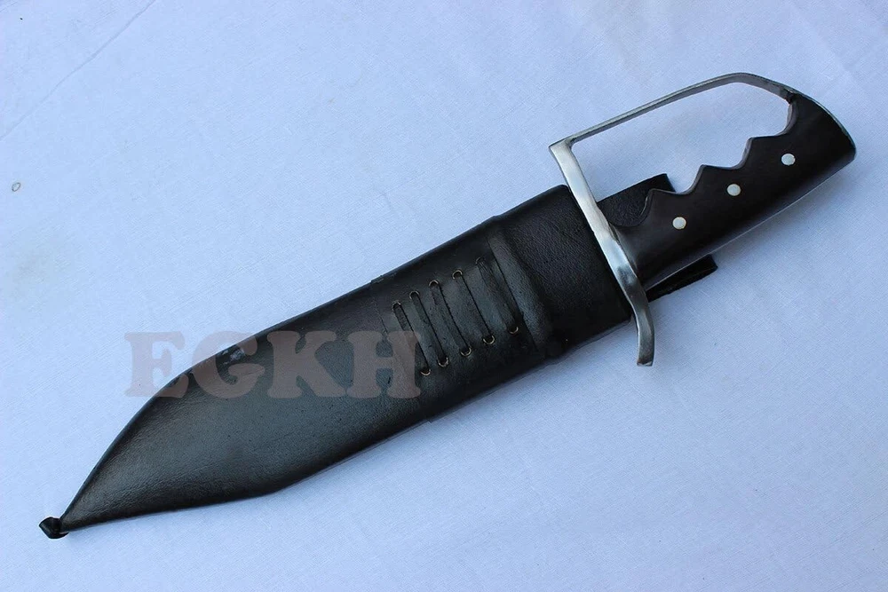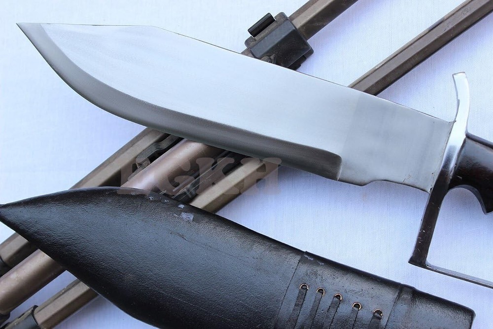 * Specification of 13 Inch Blade Kukri Knife : This is handcrafted kukri therefore please note that each one might have slight variations in measurement. Material Used :-Highly Graded Carbon Steel , Buffalo Leather for Scabbard(outside) and Rosewood for the Handle, Pinewood for the Scabbard (inside), Whitemetal and "Laha" ( Nepali Traditional Glue). Blade Size and Type :- 13 inch (33.02cm) Handmade and Unpolished blade. Handle Size and Type :- 5 inch (12.70cm) Rosewood full Tang G Guard Gripper handle. Upper Spine :-5mm Lower Spine :-3mm Handle Circumference :-5 Inch. Belly :-6.5cm. Hardness of steel :-spine= 22-25 RC, belly= 45-46 RC, edge= 58-60 RC. Weight(Gms) :- 1000.0000