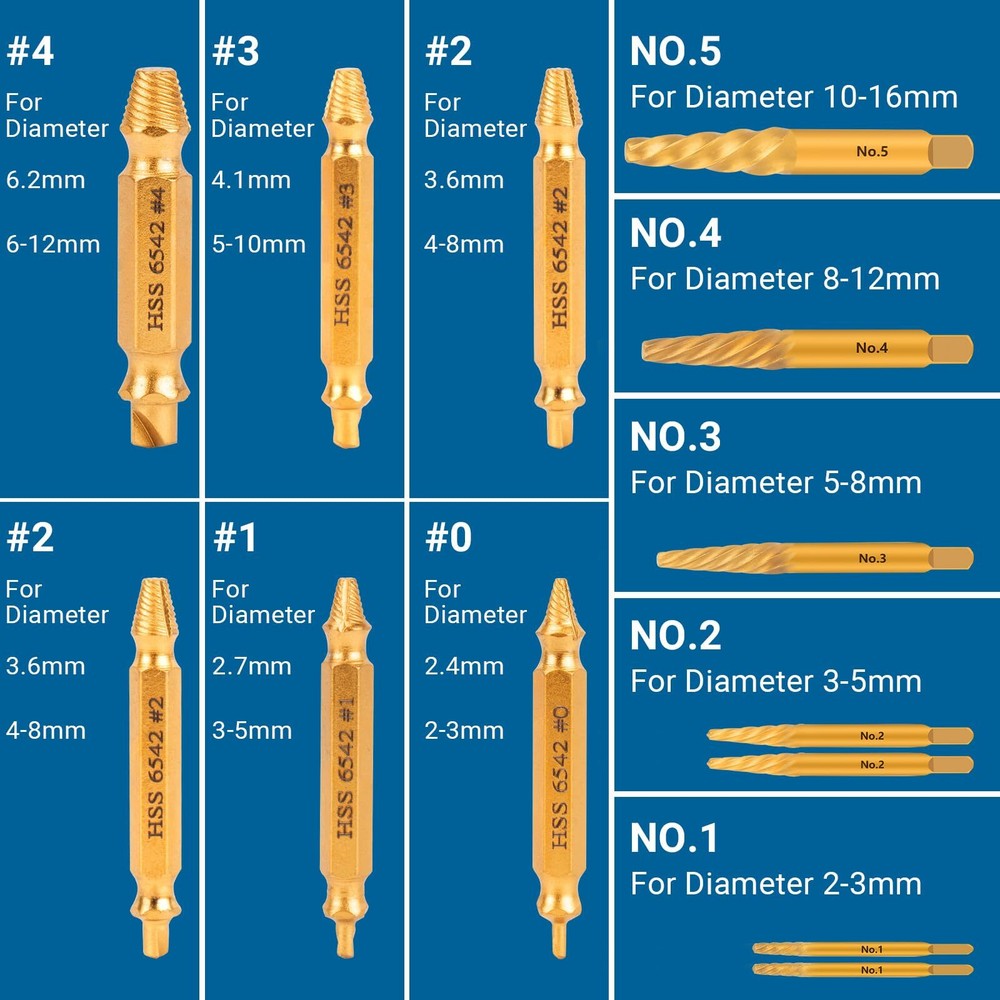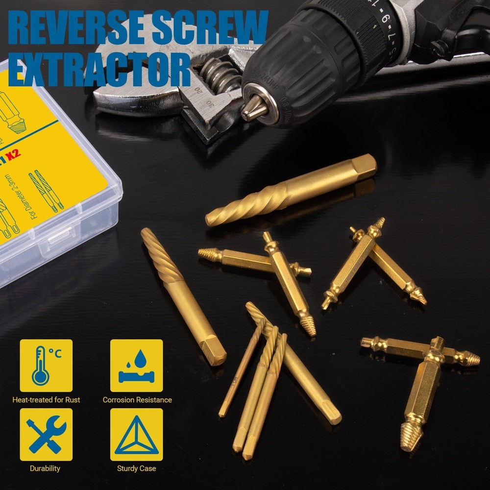 13 PCS Easy Out Screw Extractor Left-Hand Drill Bit Set for Damaged Screws