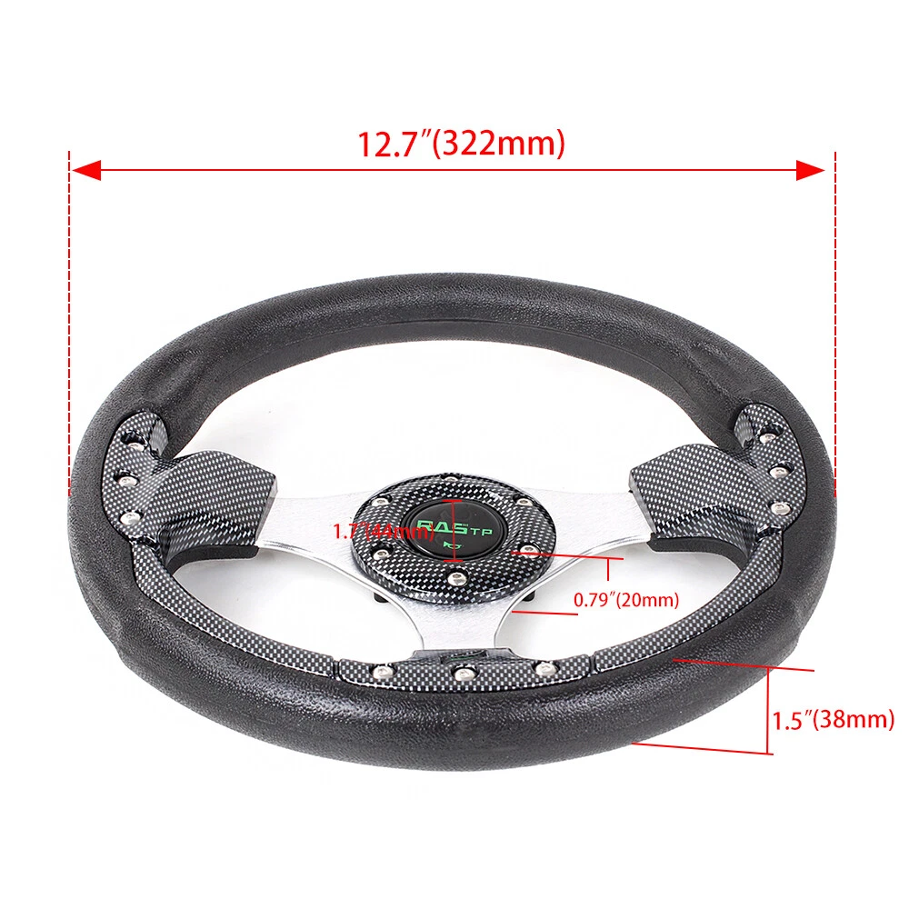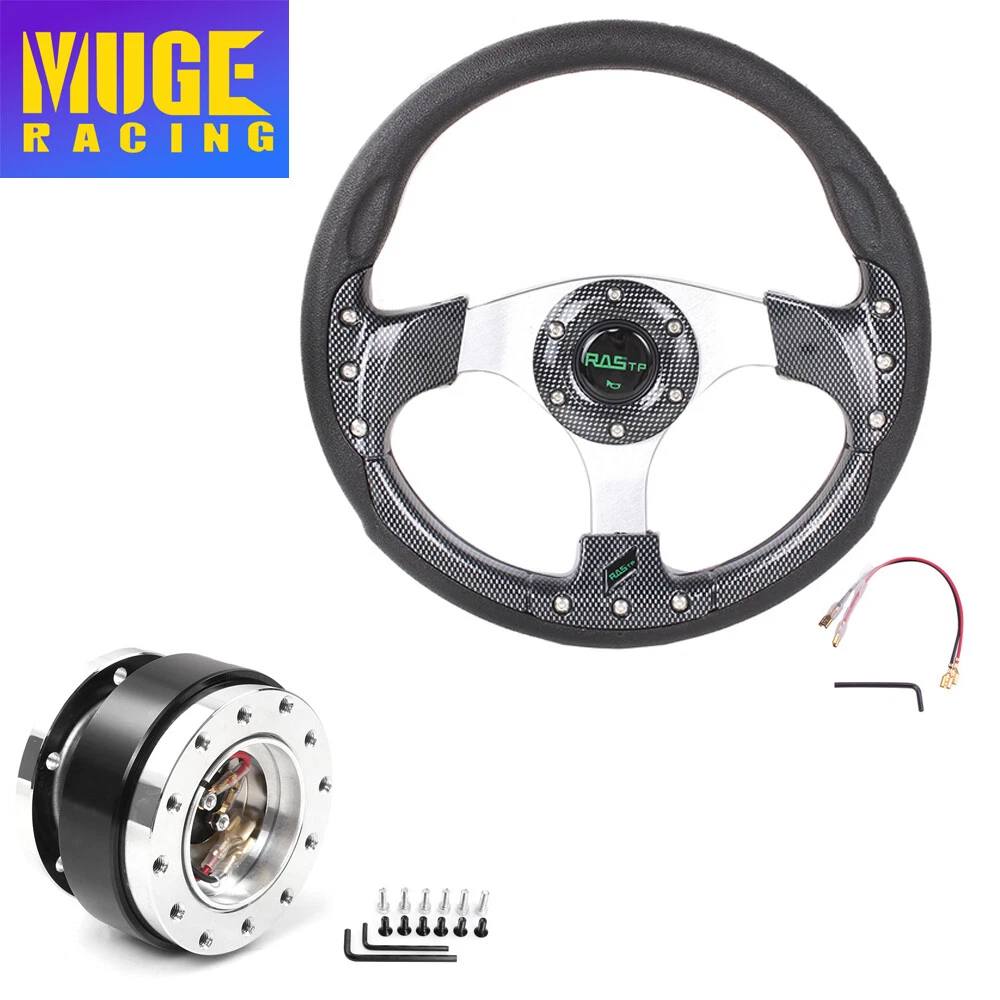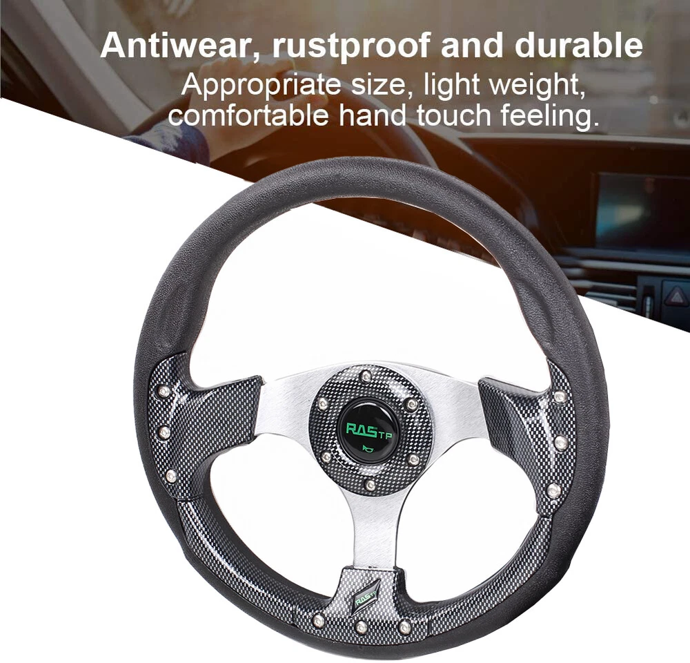 【Steering Wheel】 100% brand new Suitable for any car and model Easy to install Suede Leather With Black Stitching Specification: Style:Racing style Material:PU+Aluminum Diameter: 13" Steering wheel depth:1.3" Fitment:Universal 【Quick Release Adapter】 Billet aluminum body, good bearing capacity, durable in using. With 6 long screws and 6 short screws for various snap off needs, ball-lock type mechanism for best locking fit and usability. Easy to operate, direct bolt-on, fast detach allows steering wheel to be removed quickly. Push-pin security feature prevents premature unlocking, with screw-driven tools for easy locking. Compatible with 6-hole steering wheel hub kit, designed for many aftermarket racing steering wheel. Package include only a steering wheel and a quick release adapter, must be installed with hub adapter (not include, need purchase separately). PACKAGE INCLUDED: 1 x Steering Wheel Kit 1 x Quick Release Adapter Kit All items are Brand New unless stated otherwise on the listing. We sell DIY (Do It Yourself) Items with a few exceptions. We take no responsibility in teaching you how to install. Professional installation is strongly recommended.