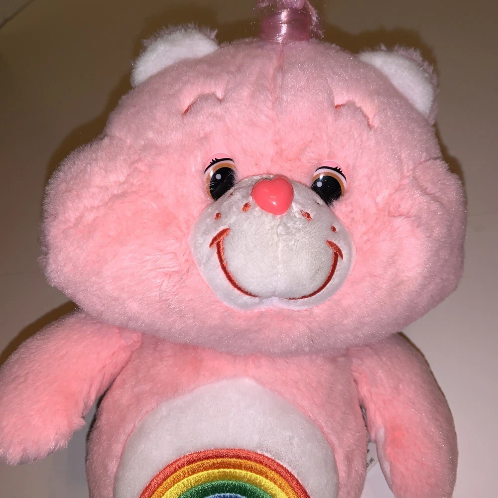 Care Bears Pink Cheer Bear Rainbow Plush Stuffed 13".