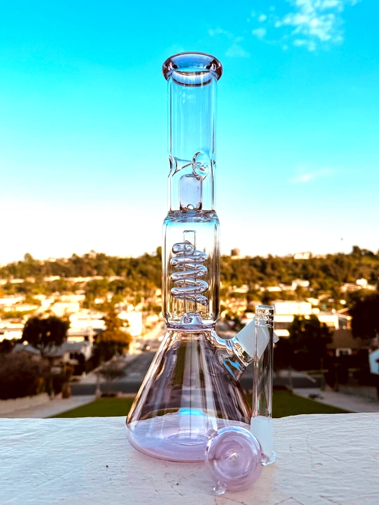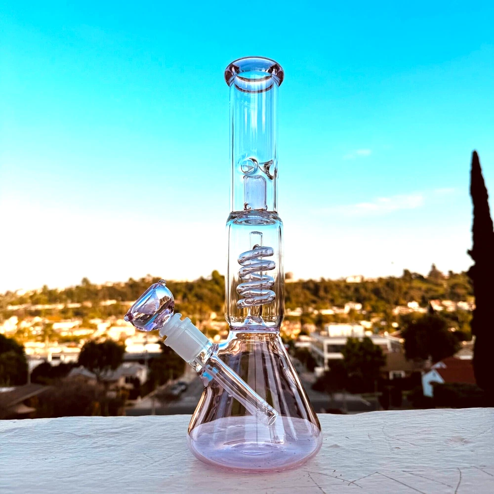 13" Pink Glass Heavy Bong Hookah Water Pipe Heavy Beaker with Custom Made Bowl