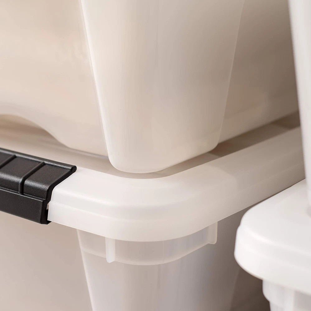 MADE IN USA: Our storage bins are proudly crafted in the USA using high-quality, durable materials, ensuring your belongings stay safe and secure. STYLISH AND DISCREET: Sometimes storage space is limited, no worries! Our pearl plastic storage bins keep your items private while still looking stylish anywhere. STACKABLE STORAGE: Maximize space in your home, office, or playroom. The securely locking lid keeps items safe and allows bins to be stacked on top of each other. PULL HANDLE & BUCKLES: A handy handle on the bottom of the bin, makes it easy to pull it out even from high shelves, while secure buckles keep lid in place. BPA-FREE AND ACID-FREE: The material used is safe for storing items, as it's free from harmful chemicals like BPA, acids and phthalates. TAPERED DESIGN: Easily nest them when not in use. -- DIMENSIONS: 16.5"L x 11"W x 6.8"H -- INSIDE DIMENSIONS: 12"L x 8"W x 5.5"H