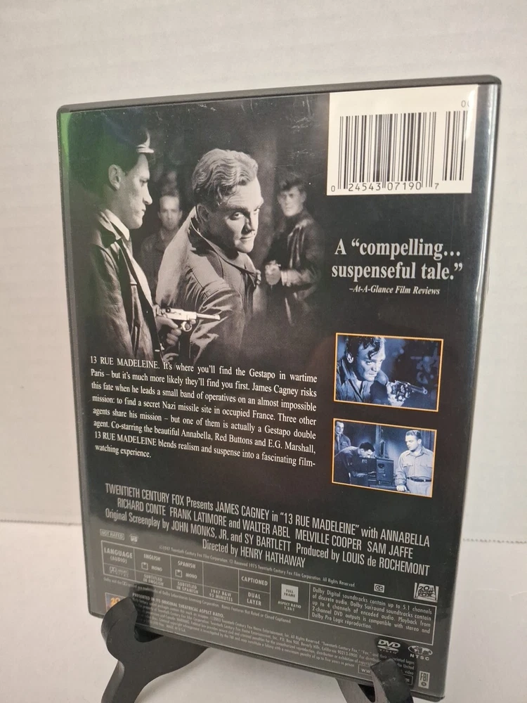 13 Rue Madeleine (DVD,1947) CLASSIC FILM + INSERTS