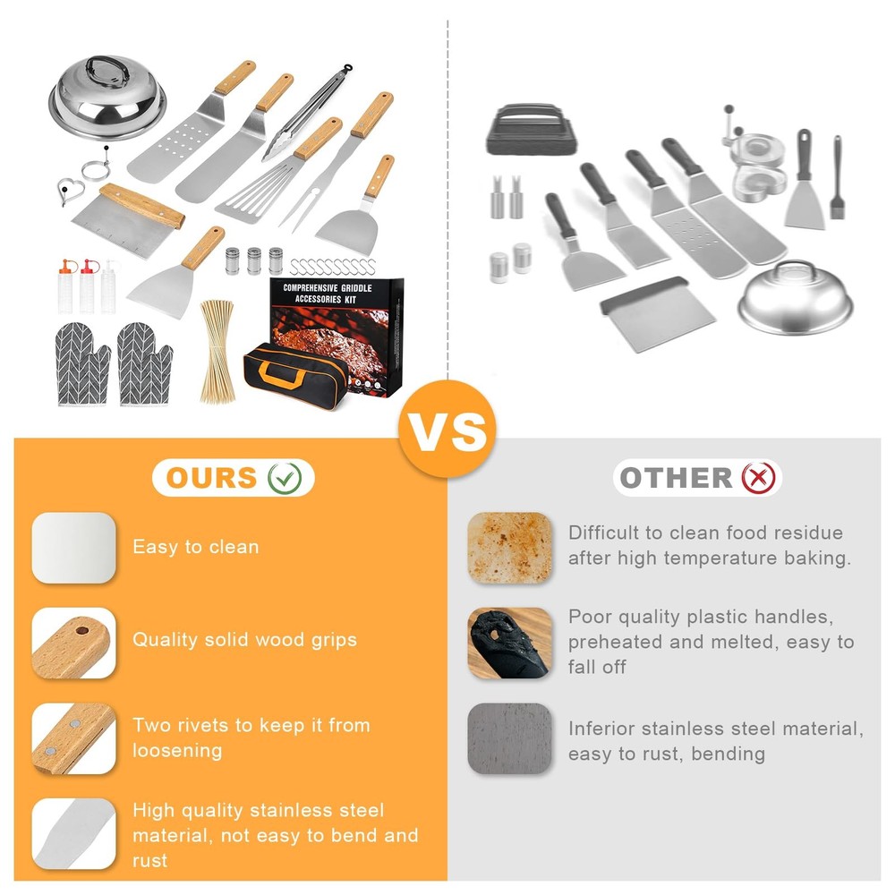 130PCS Griddle Accessory Kit for Blackstone Camp Chef and More - Spatulas Scrapers Tools