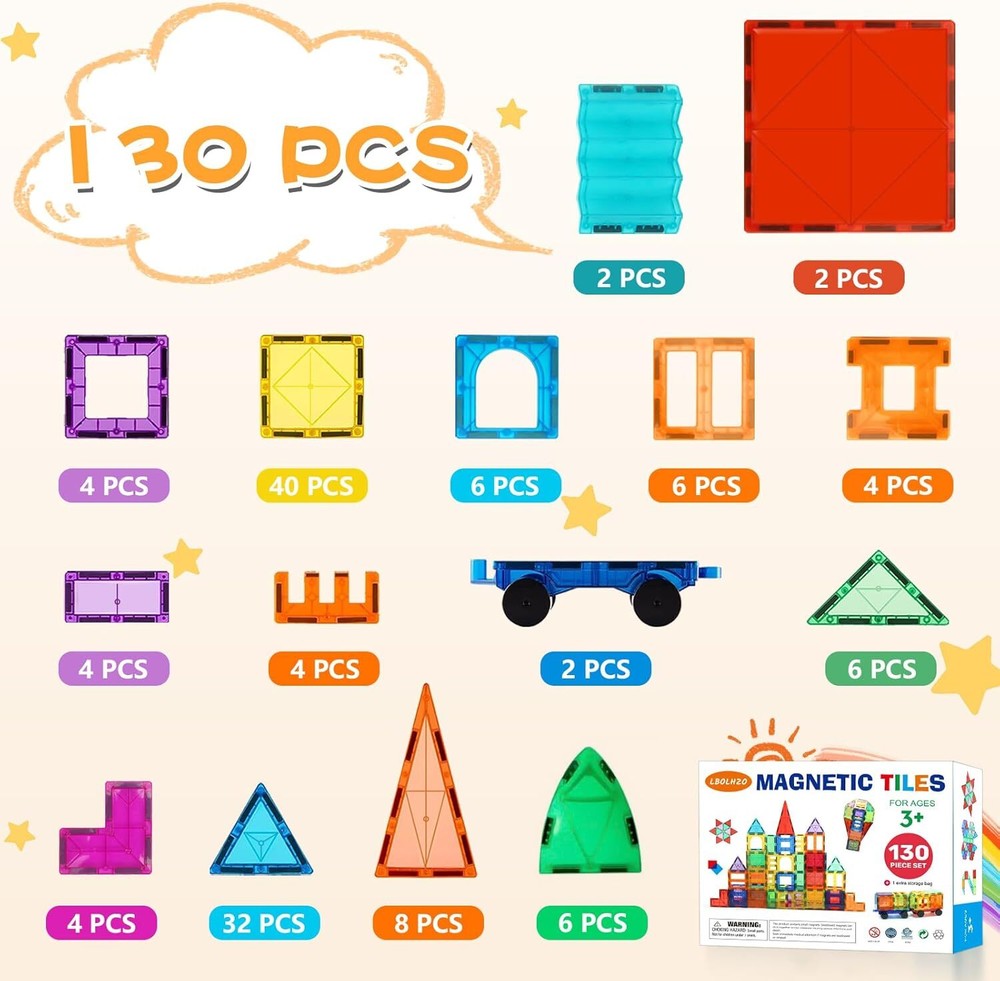 Product Description 130 PCS Magnetic Tiles,Magnetic Building Blocks Tiles 3D Clear Construction,Magnet Building Set with 2 Cars,STEM Educational Magnet Toy Set Gift for Toddlers Kids Boys 3 4 5 6 7 8 9+ Year Old 130 PCS Magnetic Tiles— Magnetic Blocks set includes 15 different shapes, perfect for creating unique models. These vibrant, colorful magnetic tiles offer endless building possibilities for both boys and toddlers. From simple 2D shapes to complex 3D geometric structures, this sensory toy sparks imagination and creativity. As a STEM toy, it promotes exploration, design, and construction, providing countless opportunities for fun and educational play. Safe Kids Toys --- Magnetic tiles toys are "CPSIA" and "ASTM" certified and do not contain any harmful gases. ABS plastic imported and safety magnet materials are safe and harmless. Smooth surface with rounded edges that won't scratch your hands. perfect gifts magnetic toys for boys and girls over 3 years old! Larger & Stronger Magnet --- Reinforcement magnets are used in all 130 pieces. Double layer magnets get stronger magnets easier and faster to build stronger items that don't collapse easily.It offers a fun and educational experience. The toys for ages 8 9 10 11 12 13 boys and girls Learning By Playing --- Magnetic Blocks are designed with a strong emphasis on STEM (Science, Technology, Engineering, and Mathematics) education.Great magnetic construction toys give children hours of fun and help develop their color and shape recognition, creativity and imagination, hands-on skills, design skills, social skills and thinking skills. Great Gifts :Preschool toys are the perfect choice for your child! provides excellent service. If you have any questions, we will take full responsibility for our products! About Us We are a reputable seller with many years of experience selling on eBay. Our goal is to provide high-quality products and excellent customer service. Payment 1.We accept PayPal only. 2.All major credit cards are accepted through secure payment processor PayPal. 3.Payment must be received within 7 business days of auction closing. 4.We ship to your eBay or Paypal address. Please make sure your eBay and Paypal address is correct before you pay. Feedback will be left automatically after we receive your feedback. Please contact us before leaving a Negative feedback or Neutral feedback. We would try our best to help you solving any problem. Shipping Items will be shipped within 1-3 business days when we received payment. (Orders are not processed on weekends & holidays) Tracking information will be sent once item is shipped. Delivery time depends on destination and other factors Item is shipped to ebay address. Leaving correct address can minimize delay. For international shipping and shipping to Guam, Hawaii and Alaska, Please contact us before placing the order. International buyers please note: Import duties, taxes and charges are not included in the item price or shipping charges. These charges are buyer’s responsibility. We will try our best to reduce the risk of the custom duties. Local pick-up is unavailable at the moment. Returns For any issues with Defects, Return, Item Exchange request, please contact us first and send us a message first before opening any type of case or request. We devote ourselves making EVERY CUSTOMER in 100% Satisfactory and resolve any problem. We highly value and appreciate your business. Thank you. No returns will be accepted without an RMA number. Please contact us for the RMA number. Return is acceptable within 30 days of delivery. Return for replacement or money back is optional. Returned items must be in the brand new, unaltered and resalable condition. Seller is not responsible for any labor cost, expense in a dealer store, or damage due to wrong installation. Contact Us We reply any email messages within 1 business / working days(off-duty at weekend). If you do not get a response from us, then please check your junk or spam mailbox. Our Business hours: Mon-Fri 9:00-18:00, UTC/GMT +8 hour s . Please contact us either by clicking "contact seller" in the "purchase history" section or simply click "ask a question" at the bottom of this page. If you are unsatisfied with our item or service, please contact us before leaving any feedback. We are committed to resolve all issues in a friendly and satisfactory manner. To provide you with better service, please provide the following information in your email: Your ebay ID Order problem, order number For product questions, the eBay article number, the product URL or the product SKU Unfortunately, the eBay guidelines do not allow us to provide a phone number. But if you'd rather call please send us an email.
