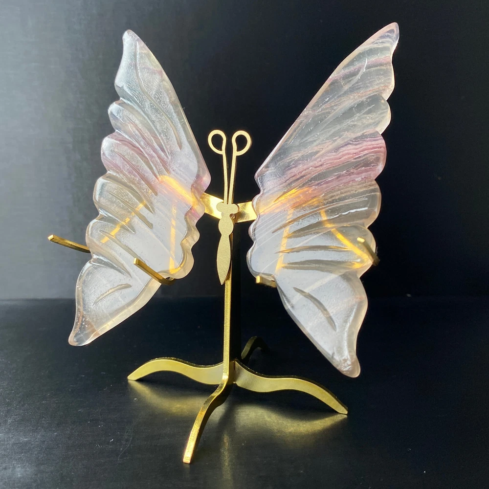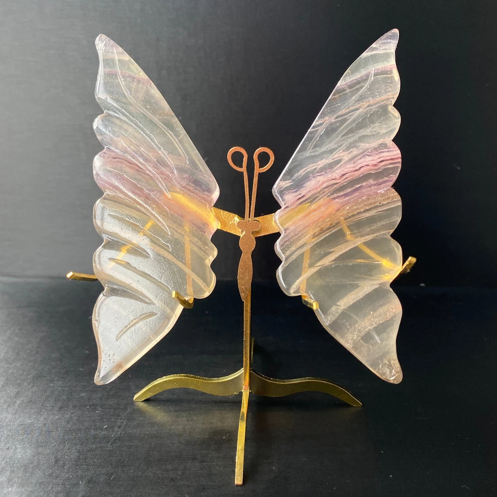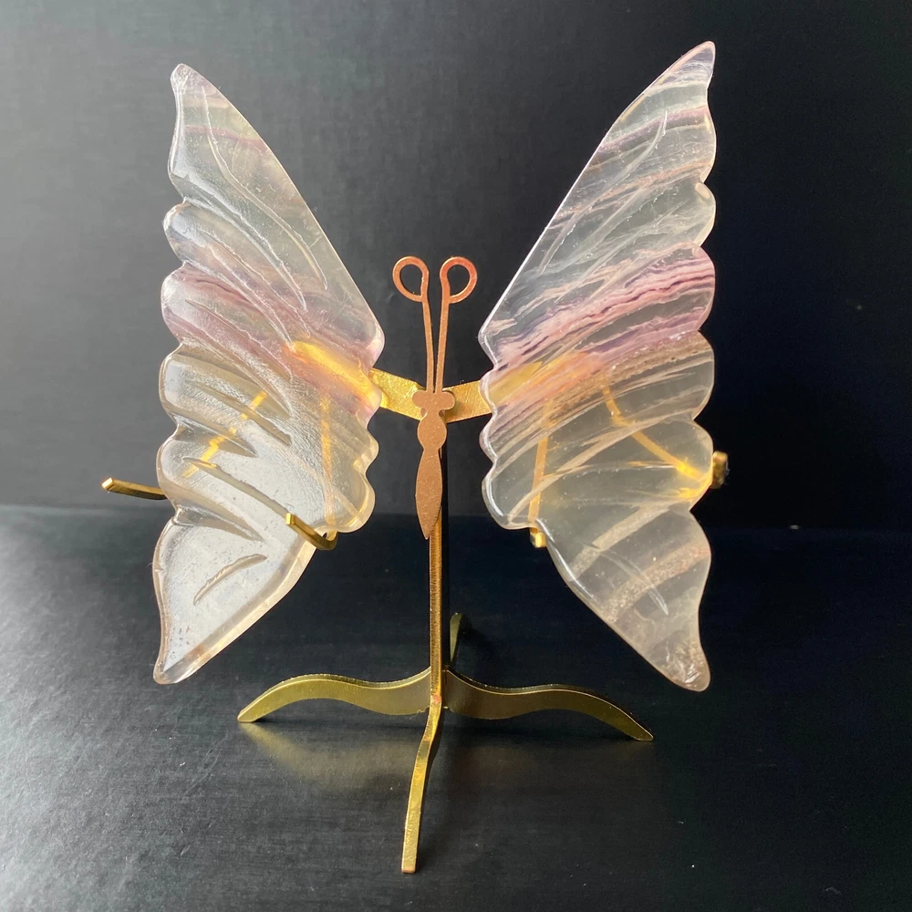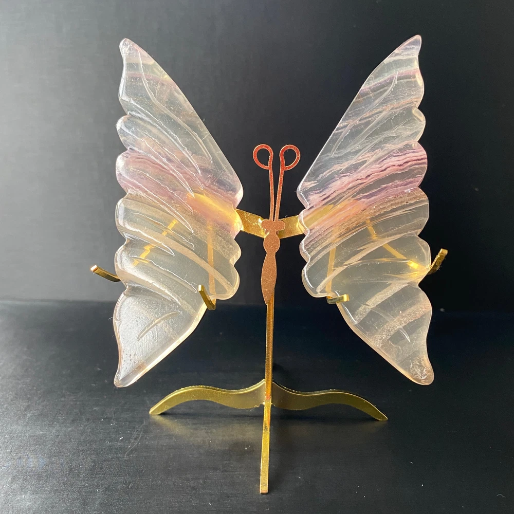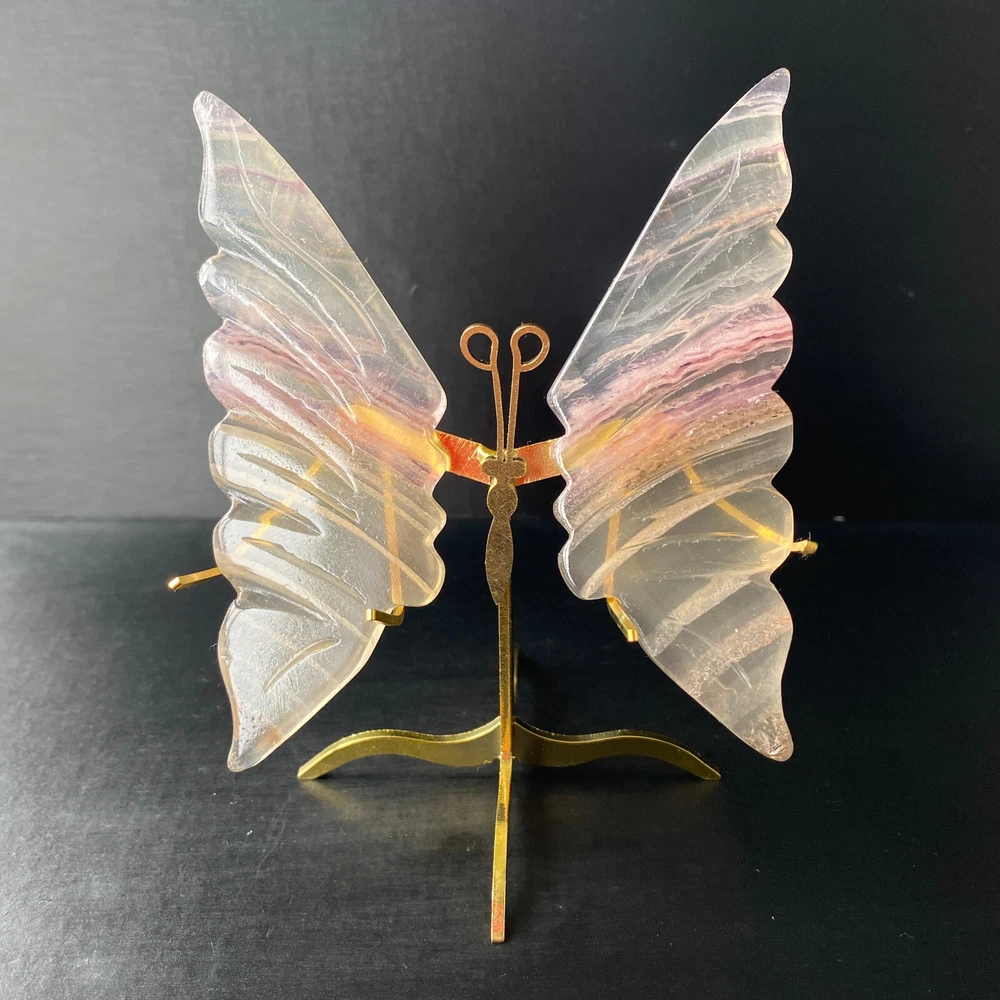 131G Natural Crystal Fluorite Butterfly Wings Healing Statue Decor + Stand