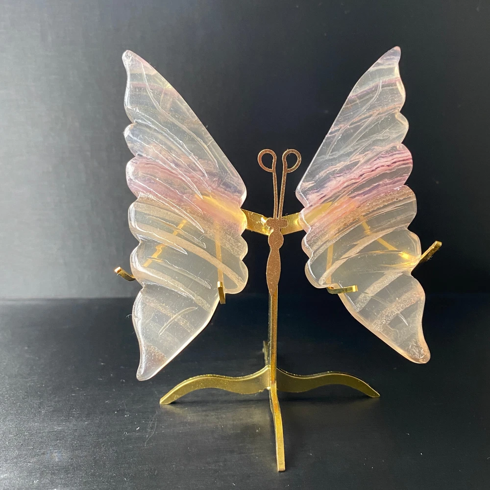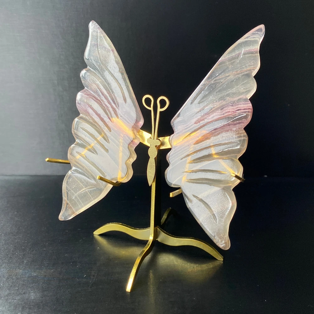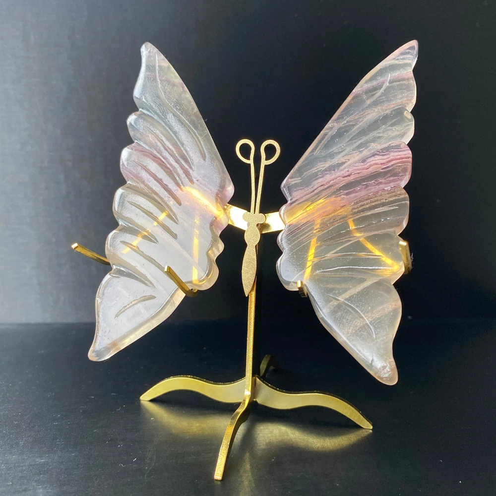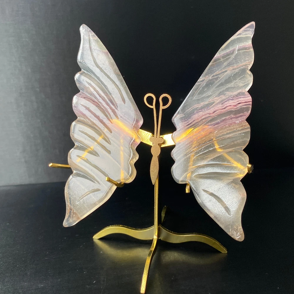 131G Natural Crystal Fluorite Butterfly Wings Healing Statue Decor + Stand