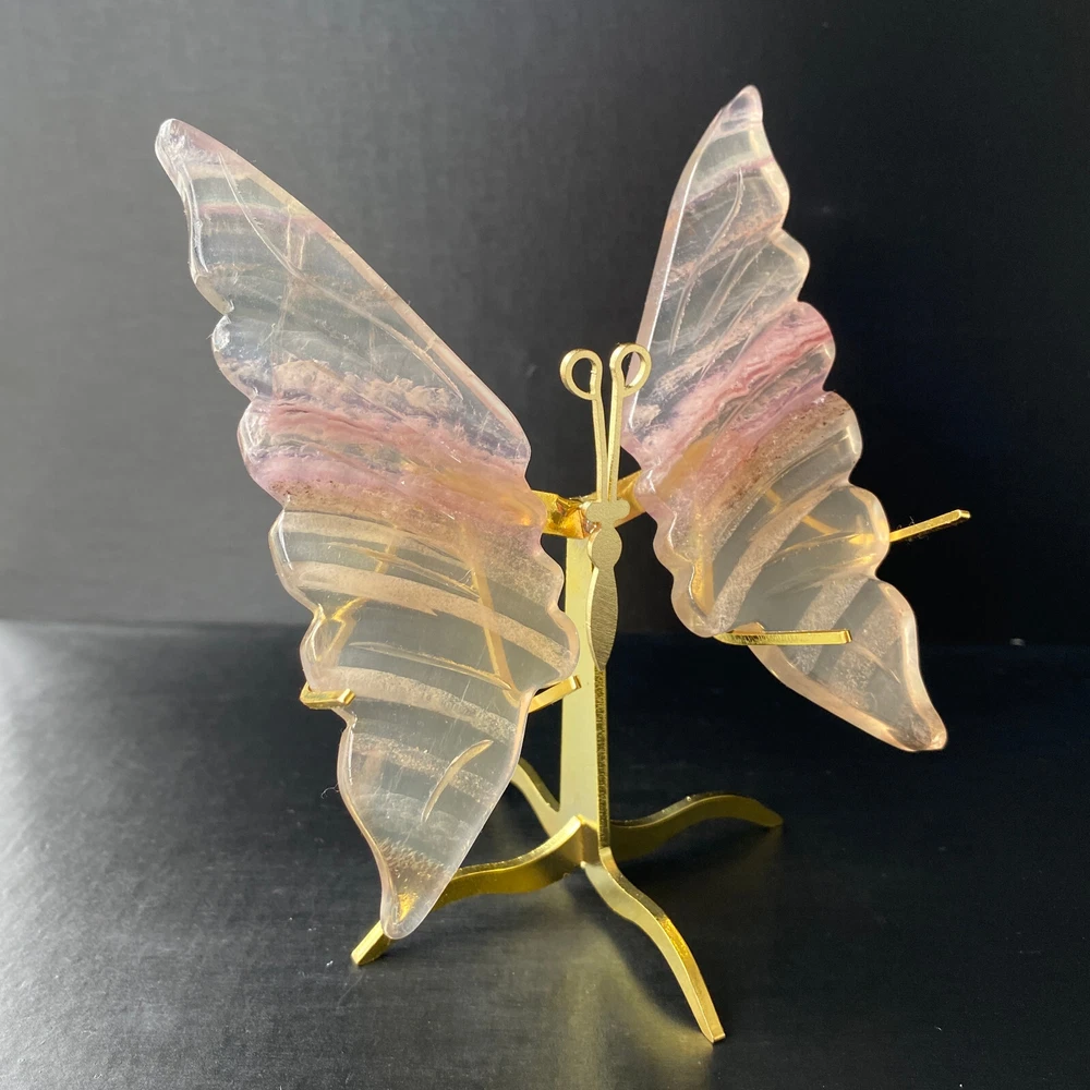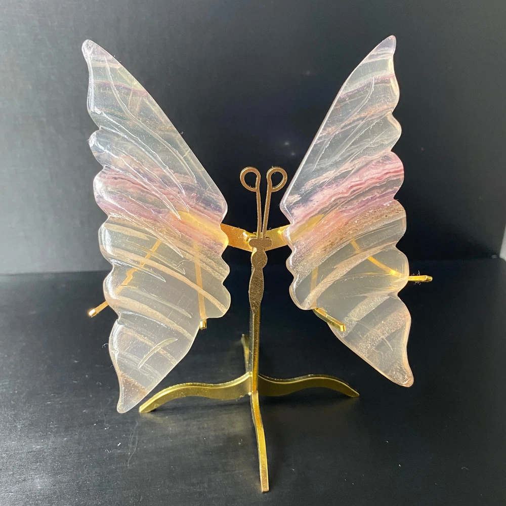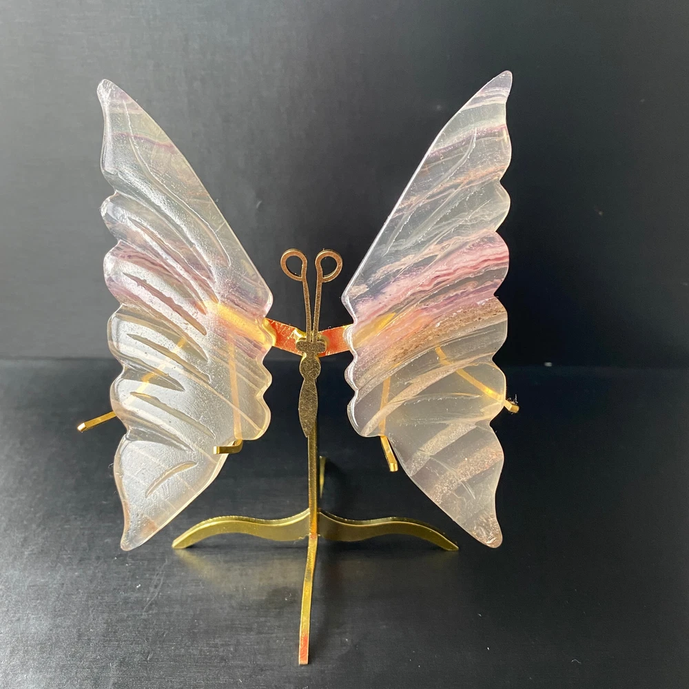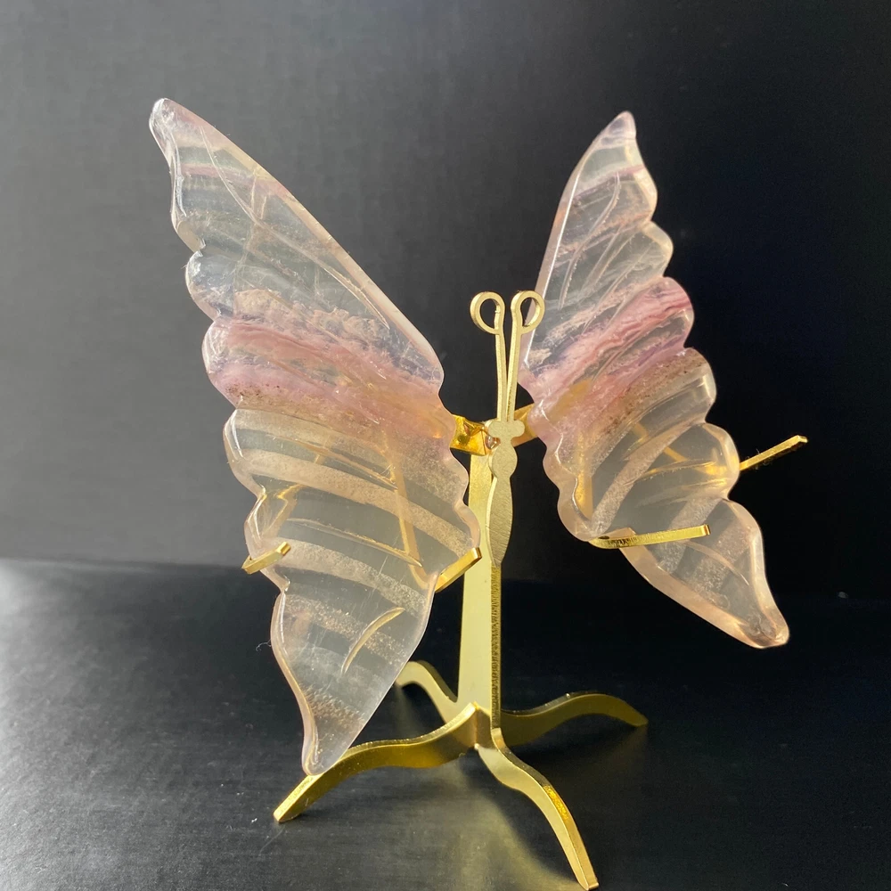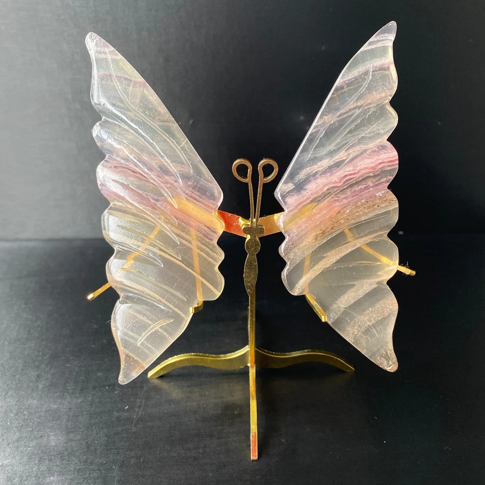 131G Natural Crystal Fluorite Butterfly Wings Healing Statue Decor + Stand