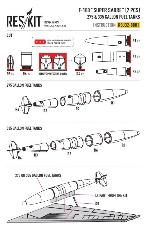 1:32 F-100 Super Sabre Scale Kit with 275 & 335 Gallon Fuel Tanks - ResKit RSU32-0081