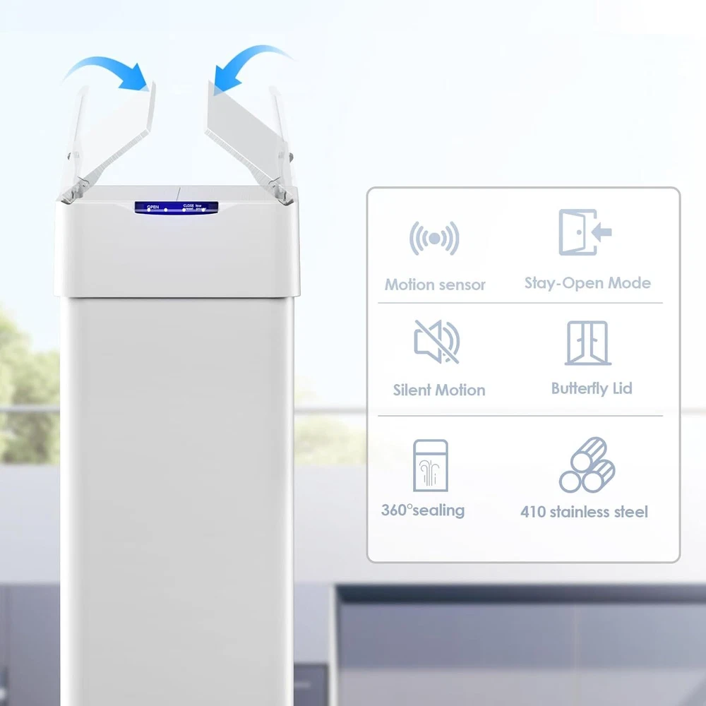 Description: Yiwsz-0 Your Best Online Business Partner Automatic Trash Can, Stainless Steel Motion Sensor garbage bin, Smart Trash Can W/ Butterfly Lid, Bag Retainer Ring and Display Light for Living Room, Kitchen, Office Description: Sensor and Button Mode: Sensor trash can features sensor and button modes to change your trash collection experience. Simply within the 5.9-inch sensing range, the motion sensor is activated, detecting motion in less than a second for easy use. Or choose to press the open button to keep it open for a full 3 minutes. When you need to close faster, just touch the close button to close instantly Butterfly Lid Design: Butterfly lid of the smart trash can is designed to maximize functionality without taking up too much panel space. Whether you are in a cozy kitchen or a compact office, this trash can will blend seamlessly into your environment. With its slow closing function, you can open and close it with peace of mind without causing too much disturbance to the surrounding environment 410 Stainless Steel and Slow-Down Lid:: 410 stainless steel trash can is not only durable, but also has a beautiful brushed surface, which is more resistant to dirt and wear. Keeping it clean is a breeze! Just wipe it with a cloth and it will be brand new. Sensor Trash Can with slow closing function, you can open and close it with peace of mind without causing too much disturbance to the surrounding environment Large Capacity: Sensor trash can has a 18.5/21.1 gallon capacity and is designed for efficiency. Accommodating large amounts of trash means fewer bag changes, saving you time and energy. Trash bag fixing rings keep trash bags neatly stowed while providing the stability you need when disposing of trash without them slipping off easily Low Voltage Alarm: Motion trash can is powered by four AA batteries (not included), and the panel of the slow-down lid is equipped with a low voltage alarm. When the battery power is below 4.8V, the red warning light will light up, reducing your worry about the remaining power and avoiding being caught off guard when it is time to replace the battery Specifications: Room Type: Kitchen Shape: Rectangular Color: White Capacity: 50L Material: 410 Stainless Steel Opening Mechanism: Motion Sensor Power: 4*1.5v AA batteries (NOT included) Recommended Uses For Product: Indoor Special Feature: Motion Sensor Finish Type: Powder Coated Item Specifics Brand Unbranded Item Height 10.6 Item Length 23.2 in Item Width 16.1 in Type Trash Can Capacity 50L Room Kitchen Color White Material Stainless Steel Features Automatic Suitable For Indoor Country/Region of Manufacture China Payment We only accept Payoneer payment. Shipping We will ship out your item within 24-48 business hours after payment received; We don't process orders on weekends and holidays. Returns 30 day returns. Full / Partial Money Back, or Replacement. Contact Us If you have ANY problems, please feel free to let us know, we'll get back to you ASAP and do our bets to resolve it. Yiwsz-0 Your Best Online Business Partner DESCRIPTION PAYMENT SHIPPING RETURN POLICY CONTACT US Store Category Store Home Kids Slide Garbage Can Indoor Furniture Home & Garden Pet Supplies Hot Item 60L / 16 Gal Dual Trash Can Stainless Steel Kitchen Garbage Bin Recycle Dustbin USD 116.99 60L Dual Trash Can Stainless Steel Step On Garbage Can Recycling Bin with Lid USD 127.99 8 Gallon Trash Can, Rectangular Step On Kitchen Trash Can, Stainless Garbage Can USD 59.99 60L / 16 Gal Dual Kitchen Trash Can,Stainless Steel Garbage Can Recycle Dustbin USD 129.99 8 gal Stainless Dual Trash Can Kitchen Step Garbage Can Classified Recycle Bin USD 79.99 New List Item Hollywood LED Makeup Vanity Mirror 3 Color Light Bathroom Mirror Anti-Fog USD 99.99 Metal Chicken Coop Outdoor Metal Walk-in Poultry Cage with Cover 23x6.6x6.6ft USD 239.99 LED Bathroom Mirror Wall Vanity Makeup Mirror 3 Colors Touch Anti-Fog Dimmable USD 109.99 Hollywood Makeup Vanity Mirror W/ 20 LED Bulbs & Bluetooth 3 Colors Light 31" USD 109.99 Portable Soft Dog Crate Foldable 4-Door Dog Kennel Travel Dog Crate Lightweight USD 69.99 Help & Info Payment Policy Shipping Policy Return Policy FAQ About Us Automatic Trash Can, Stainless Steel Motion Sensor garbage bin, Smart Trash Can W/ Butterfly Lid, Bag Retainer Ring and Display Light for Living Room, Kitchen, Office Description: Sensor and Button Mode: Sensor trash can features sensor and button modes to change your trash collection experience. Simply within the 5.9-inch sensing range, the motion sensor is activated, detecting motion in less than a second for easy use. Or choose to press the open button to keep it open for a full 3 minutes. When you need to close faster, just touch the close button to close instantly Butterfly Lid Design: Butterfly lid of the smart trash can is designed to maximize functionality without taking up too much panel space. Whether you are in a cozy kitchen or a compact office, this trash can will blend seamlessly into your environment. With its slow closing function, you can open and close it with peace of mind without causing too much disturbance to the surrounding environment 410 Stainless Steel and Slow-Down Lid:: 410 stainless steel trash can is not only durable, but also has a beautiful brushed surface, which is more resistant to dirt and wear. Keeping it clean is a breeze! Just wipe it with a cloth and it will be brand new. Sensor Trash Can with slow closing function, you can open and close it with peace of mind without causing too much disturbance to the surrounding environment Large Capacity: Sensor trash can has a 18.5/21.1 gallon capacity and is designed for efficiency. Accommodating large amounts of trash means fewer bag changes, saving you time and energy. Trash bag fixing rings keep trash bags neatly stowed while providing the stability you need when disposing of trash without them slipping off easily Low Voltage Alarm: Motion trash can is powered by four AA batteries (not i