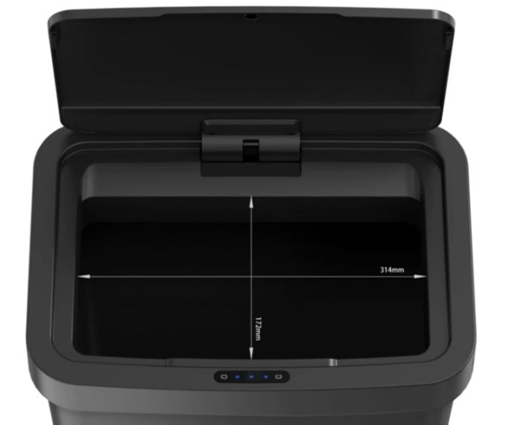 The Mainstays 13.2 Gallon Plastic Motion Sensor Kitchen Trash Can is perfect for large families or busy environments. The touchless operation allows for improved cleanliness and hygiene, this trash can operates with hands-free motion sensing technology. Simply wave your hand above the sensor at the front of the lid to open it automatically. The creative lighting system counts down to the soft close of the lid for a quiet user experience. Perfectly sized to accommodate any standard 13-gallon trash can liner, this durable plastic resin garbage can also features soft touch buttons for manual operation. The rectangular design and all black finish makes this the ideal garbage can for use in the kitchen, office, laundry room or any other area of the house where you need the convenience of a touchless trash disposal. On Feb 19, 2025 at 01:30:59 PST, seller added the following information: