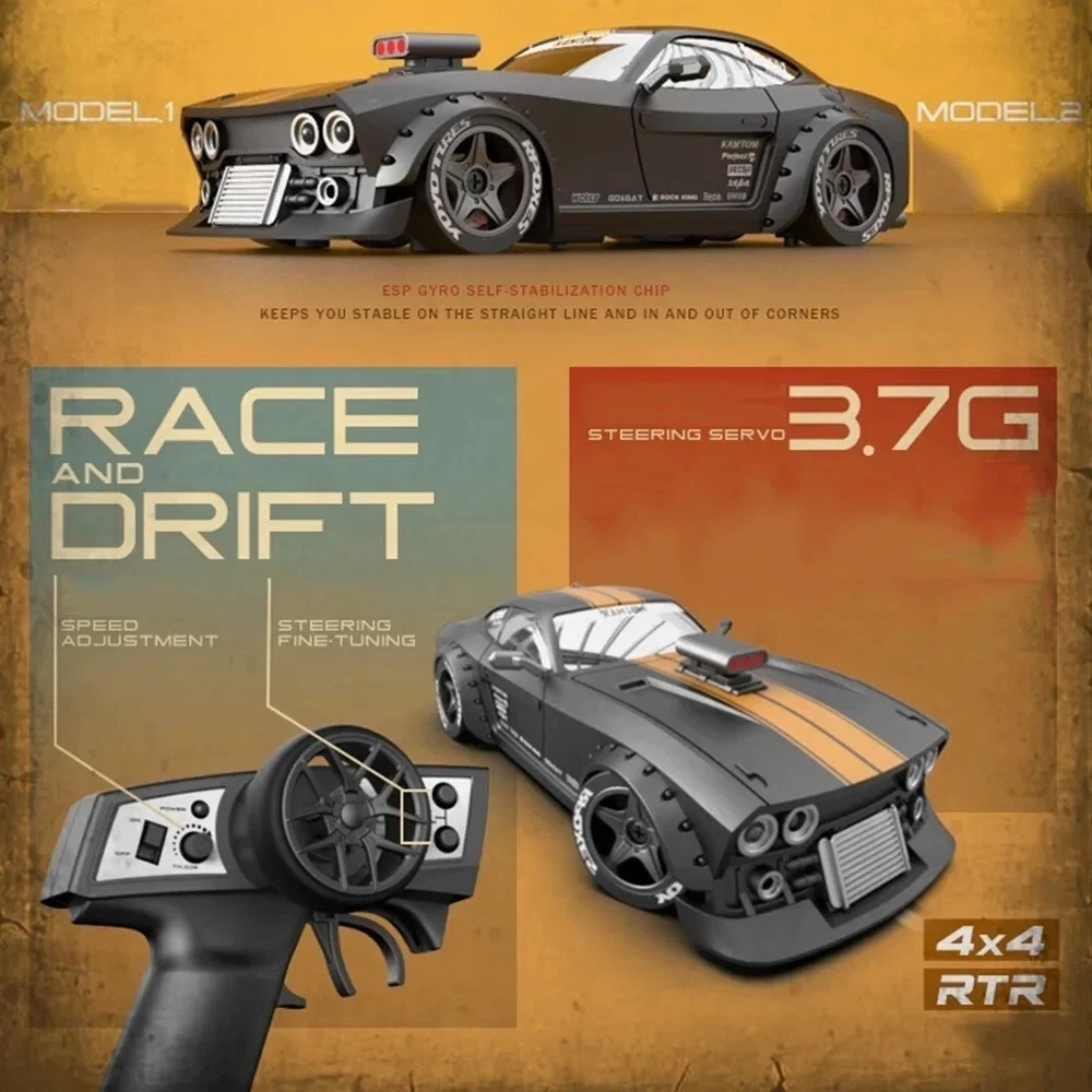 1/32 4X4 RTR 2.4G Remote Control Mini Racing Car with Gyroscope Name: High-speed drift remote control car Material: ABS plastic and electronic components Product scale: 1/32 Model size: 140x65x40mm (length x width x height) Shell type: ABS hard shell Dimensions:140*65*40MM Assembly type: RTR vehicle finished product Electric adjustment features: gyroscope (ESP self-stabilization system Package Includes Original Box,Batteries,Operating Instructions,charger,Remote Controller