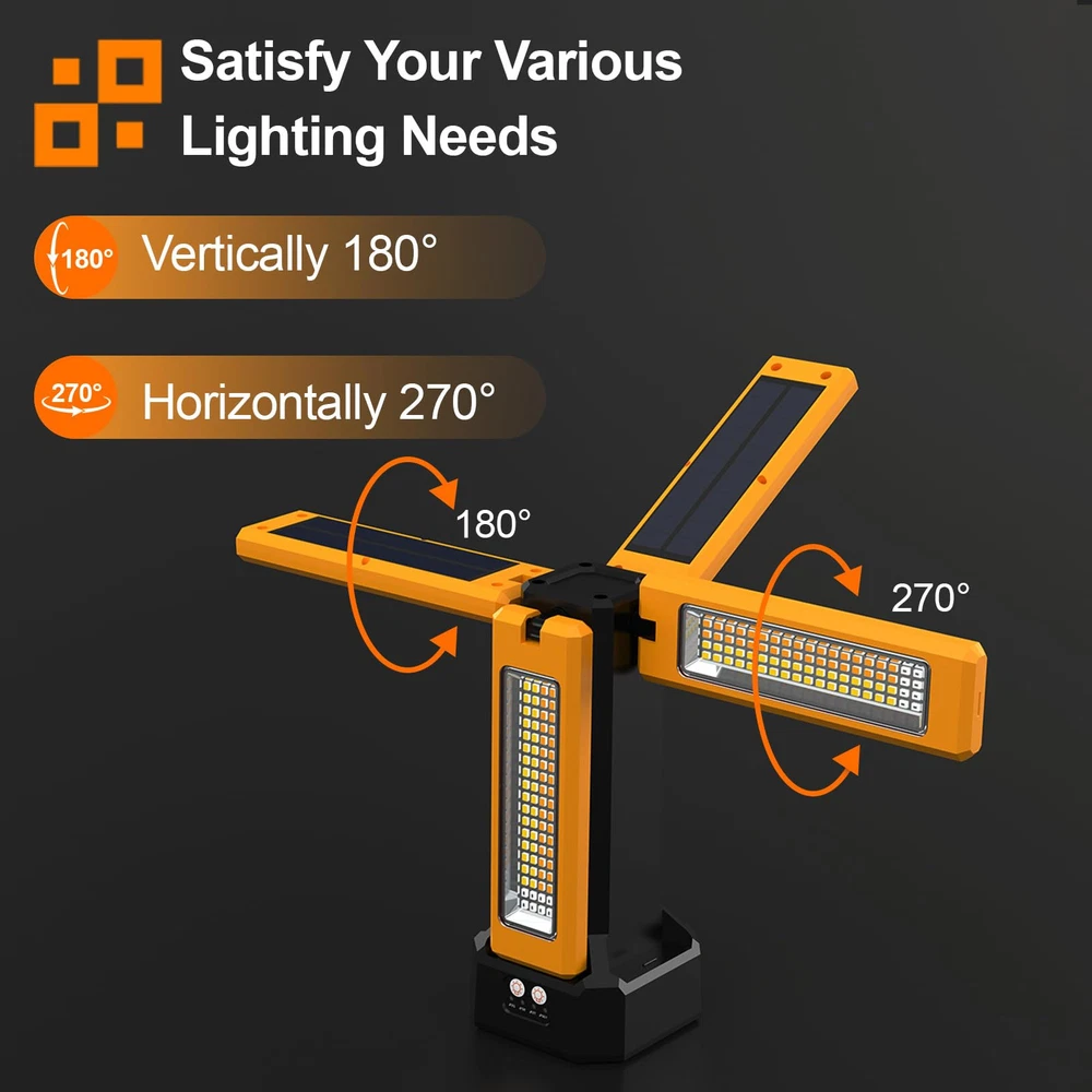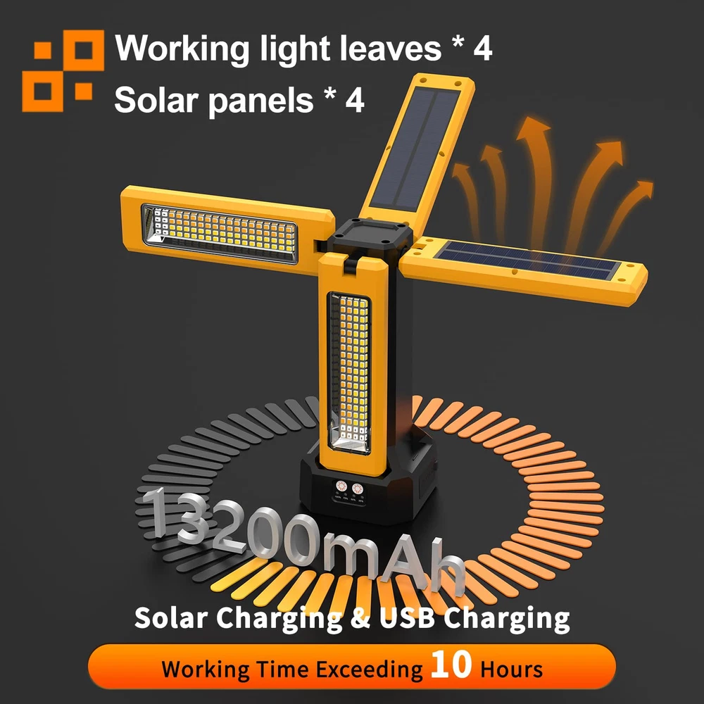 13200mAh Rechargeable Solar Work Light IP64 Waterproof with Folding Stand and...