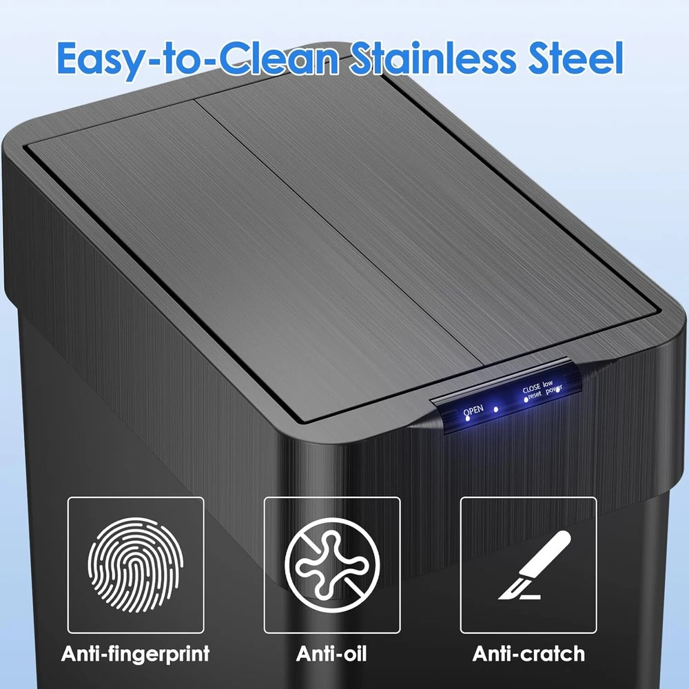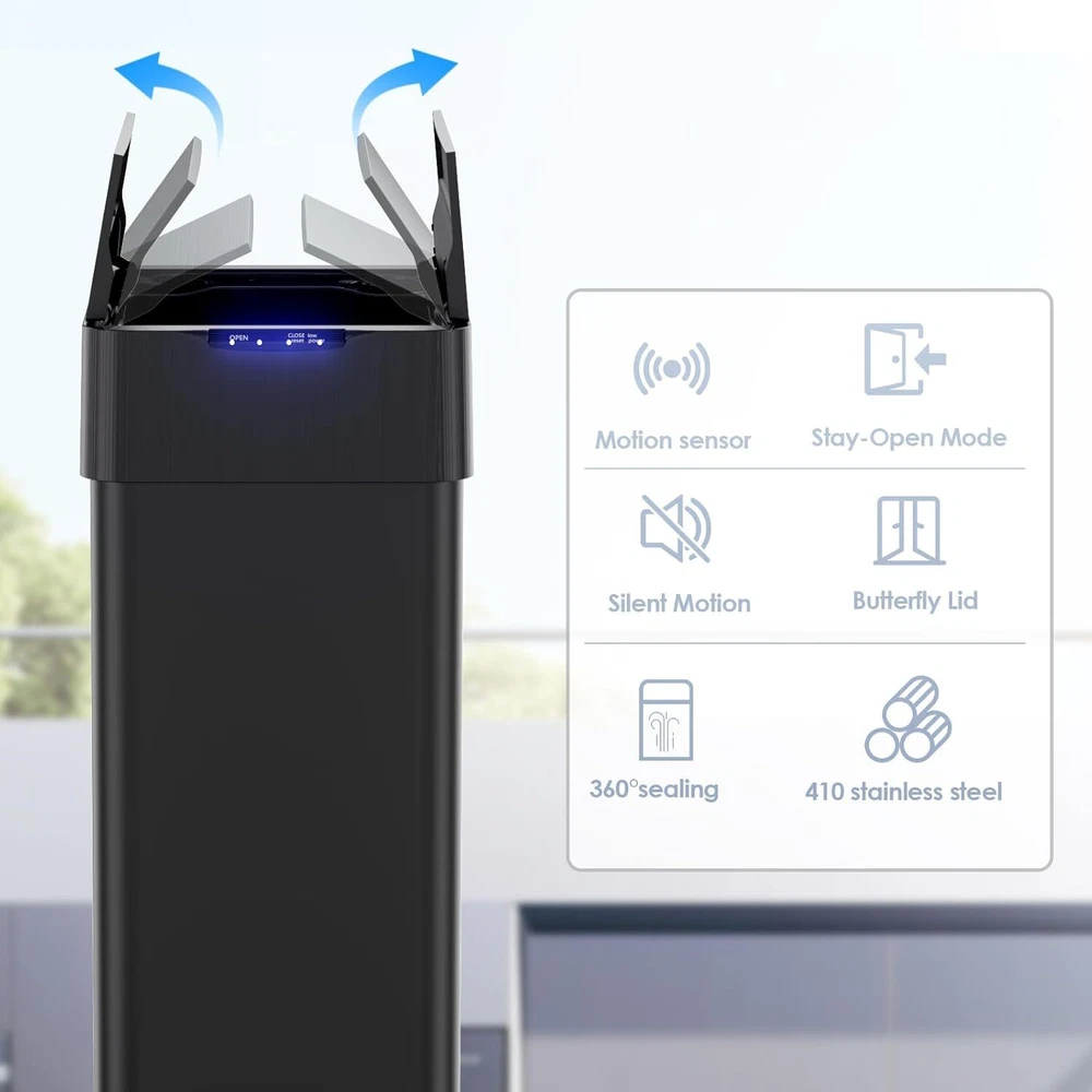 Description: Yiwsz-0 Your Best Online Business Partner 13.2-21.1 Gallon Automatic Trash Can, Stainless Steel Motion Sensor garbage bin, Smart Trash Can W/ Butterfly Lid, Bag Retainer Ring and Display Light for Living Room, Kitchen, Office Description: Sensor and Button Mode: Sensor trash can features sensor and button modes to change your trash collection experience. Simply within the 5.9-inch sensing range, the motion sensor is activated, detecting motion in less than a second for easy use. Or choose to press the open button to keep it open for a full 3 minutes. When you need to close faster, just touch the close button to close instantly Butterfly Lid Design: Butterfly lid of the smart trash can is designed to maximize functionality without taking up too much panel space. Whether you are in a cozy kitchen or a compact office, this trash can will blend seamlessly into your environment. With its slow closing function, you can open and close it with peace of mind without causing too much disturbance to the surrounding environment 410 Stainless Steel and Slow-Down Lid:: 410 stainless steel trash can is not only durable, but also has a beautiful brushed surface, which is more resistant to dirt and wear. Keeping it clean is a breeze! Just wipe it with a cloth and it will be brand new. Sensor Trash Can with slow closing function, you can open and close it with peace of mind without causing too much disturbance to the surrounding environment Large Capacity: Sensor trash can has a 18.5/21.1 gallon capacity and is designed for efficiency. Accommodating large amounts of trash means fewer bag changes, saving you time and energy. Trash bag fixing rings keep trash bags neatly stowed while providing the stability you need when disposing of trash without them slipping off easily Low Voltage Alarm: Motion trash can is powered by four AA batteries (not included), and the panel of the slow-down lid is equipped with a low voltage alarm. When the battery power is below 4.8V, the red warning light will light up, reducing your worry about the remaining power and avoiding being caught off guard when it is time to replace the battery Specifications: Room Type: Kitchen Shape: Rectangular Color: Black & Silver & White Capacity: 50-80L (13.2-21.1 gallons) Material: 410 Stainless Steel Opening Mechanism: Motion Sensor Power: 4*1.5v AA batteries (NOT included) Recommended Uses For Product: Indoor Special Feature: Motion Sensor Finish Type: Powder Coated Item Specifics Brand Unbranded Item Height 23.54 in Item Length 16 in Item Width 10 in Type Trash Can Capacity 50L-80L Room Kitchen Material Stainless Steel Features Automatic Suitable For Indoor Country/Region of Manufacture China Payment We only accept Payoneer payment. Shipping We will ship out your item within 24-48 business hours after payment received; We don't process orders on weekends and holidays. Returns 30 day returns. Full / Partial Money Back, or Replacement. Contact Us If you have ANY problems, please feel free to let us know, we'll get back to you ASAP and do our bets to resolve it. Yiwsz-0 Your Best Online Business Partner DESCRIPTION PAYMENT SHIPPING RETURN POLICY CONTACT US Store Category Store Home Kids Slide Garbage Can Indoor Furniture Home & Garden Pet Supplies Hot Item 8 gal Stainless Dual Trash Can Kitchen Step Garbage Can Classified Recycle Bin USD 79.99 60L Dual Trash Can Stainless Steel Step On Garbage Can Recycling Bin with Lid USD 129.99 60L / 16 Gal Dual Kitchen Trash Can,Stainless Steel Garbage Can Recycle Dustbin USD 129.99 60L / 16 Gal Dual Trash Can Stainless Steel Kitchen Garbage Bin Recycle Dustbin USD 129.99 8 Gallon Trash Can, Rectangular Step On Kitchen Trash Can, Stainless Garbage Can USD 59.99 New List Item Pop Up Canopy Tent Portable Outdoor Adjustable Tent W/ Wheeled Bag & Sandbag USD 149.99 3-Seat Patio Swing Chair Deluxe Swing with Adjustable Canopy Removable Cushion USD 249.99 10'x10' EZ Pop UP Party Tent Outdoor Canopy Patio Gazebo Event Tent Waterproof USD 119.99 11×11 Pop Up Gazebo Tent Outdoor Canopy Events Tent Patio Tent with Mosquito USD 159.99 13x13 FT Pop Up Canopy Tent Portable Outdoor Adjustable Tent W/ Wheeled Bag USD 169.99 Help & Info Payment Policy Shipping Policy Return Policy FAQ About Us 13.2-21.1 Gallon Automatic Trash Can, Stainless Steel Motion Sensor garbage bin, Smart Trash Can W/ Butterfly Lid, Bag Retainer Ring and Display Light for Living Room, Kitchen, Office Description: Sensor and Button Mode: Sensor trash can features sensor and button modes to change your trash collection experience. Simply within the 5.9-inch sensing range, the motion sensor is activated, detecting motion in less than a second for easy use. Or choose to press the open button to keep it open for a full 3 minutes. When you need to close faster, just touch the close button to close instantly Butterfly Lid Design: Butterfly lid of the smart trash can is designed to maximize functionality without taking up too much panel space. Whether you are in a cozy kitchen or a compact office, this trash can will blend seamlessly into your environment. With its slow closing function, you can open and close it with peace of mind without causing too much disturbance to the surrounding environment 410 Stainless Steel and Slow-Down Lid:: 410 stainless steel trash can is not only durable, but also has a beautiful brushed surface, which is more resistant to dirt and wear. Keeping it clean is a breeze! Just wipe it with a cloth and it will be brand new. Sensor Trash Can with slow closing function, you can open and close it with peace of mind without causing too much disturbance to the surrounding environment Large Capacity: Sensor trash can has a 18.5/21.1 gallon capacity and is designed for efficiency. Accommodating large amounts of trash means fewer bag changes, saving you time and energy. Trash bag fixing rings keep trash bags neatly stowed while providing the stability you need when disposing of trash without them slipping off easily Low Vo