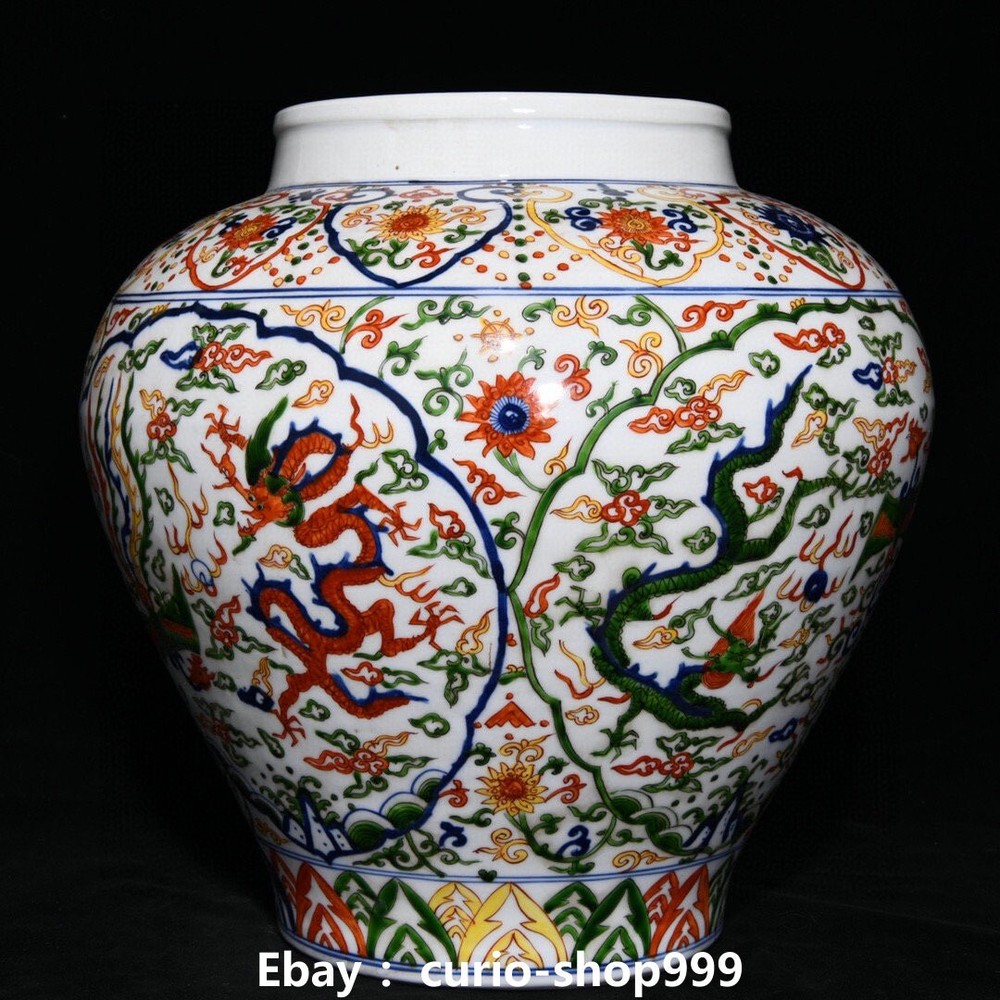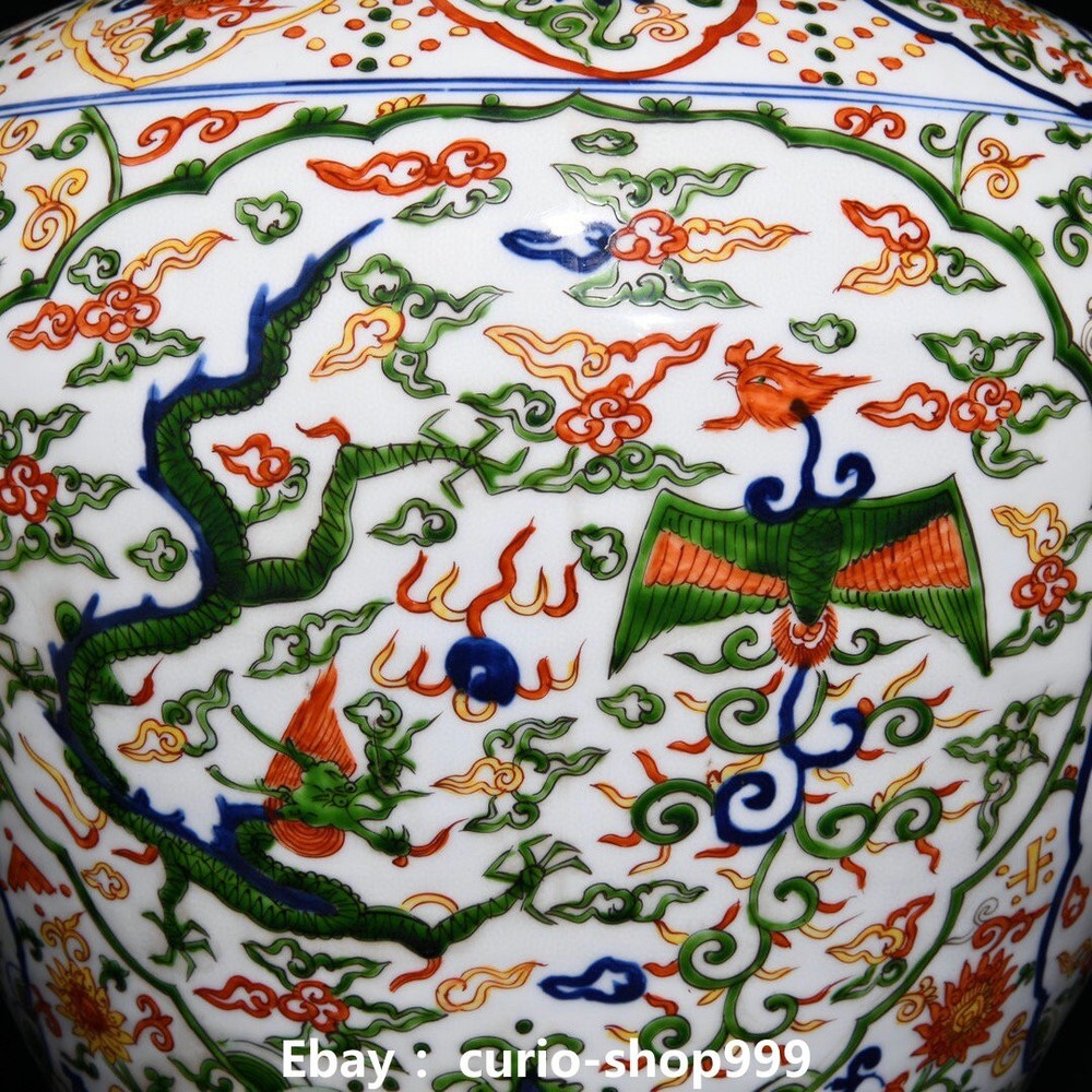 **** Welcome to our antique & Collectable Shop : Porcelain**** Description: Here is 13.3" Ming Jiajing Wucai Porcelain Dragon Beast Phoenix Bird Animal Bottle Vase. It is in good condition, and was created by skilled craftsmen in traditional style with fine handcrafts.This is a great piece of valuable collection, a valuable personal alter or a very good present. the handwork is very fine with incredible detailling. Don't miss out this chance to get it.Wish you good luck! . Material : Wucai Porcelain Size : Heigh t 13.1 Long 13.3 B readth 13.3 (inch) Condition Perfect Condition. Perfect, with no scratches, flaws or repairs. Weight: 5.5 KG----included the weight of packing materials Shipping cost to all over the world countries in Free Honored Customers: We are selling the collectibles products and crafts in Beijing ,China since 1993 and collected them all over the world all the time . In our shop the bronze sculpture, animal, vase, urn, flowerpot,Incense Burner.Table chair sets. Militaria goods. buddha statues, Bodhisattva Statues, Buddhist Ritual Items etc is our speciality .Many of the items we sell come from our own personal collection and have been in our family for a very long time .My great-grandfather was the first in this family to start collecting art & antiques when he still lived in San Xi and Tibet around 1922 ,some of the paintings he once collected can now be seen in museums around the globe.We won't make money from t he shipping cost, if you dislike the item when you receive it,we can refund all of your money to you within thirty days. Please confidence for bidding . We recommend the combine shipping and offer you an big price discount if you order more items together ! 2025.02.09 四 号
