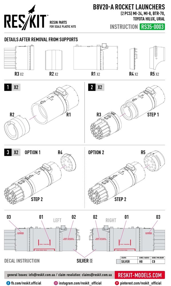 B8V20-A Rocket Launchers (2 pcs) (Mi-24, Mi-8,Toyota Hilux, BTR-70, URAL) (3D Printed) Scale 1:35 ResKit RS35-0003 for Armoured Vehicles / Helicopters Model Kit Premium Resin & 3D-Printed Upgrade for Scale Plastic Model Kits Take your scale model builds to new heights with this detailed set from ResKitβa trusted name in professional-grade accessories for plastic model kits . ResKit Premium Model Accessories β Elevate Your Scale Models with Expert Craftsmanship Upgrade Your Builds with ResKit: Discover highly detailed resin & 3D-printed accessories designed for scale plastic models . Perfect for aircraft , military vehicles , helicopters , and figures , ResKitβs precision-crafted parts bring unmatched realism to your projects. Scale: 1:35 Manufacturer: RESKIT (Accessories for Scale Plastic Kits) Model (SKU): RS35-0003 Country/Region of Manufacture: Ukraine Condition: New in Box π¬ Need more stock? Weβve got you! Message us to customize your order quantity . As direct partners with manufacturers, we restock fast to meet your needs. π― Rapid replies assured! Available all day, with only time zones causing minor delays. π π Order Transparency We're here to help and will keep you informed on your order status. π Product Specifications Material: Resin / 3D Printed Features: Kit Kit description: Unpainted, Unassembled, Kit do not contain paints and glue Category: Resin & 3D accessories Type of equipment: Armoured Vehicles / Helicopters Type of product: Arms and Weapons Recommended kit: Any / Universal Country of origin: Ukraine / USSR Skill level: Advanced Type aircraft or vehicle: Mil Mi-24 Hind Mil Mi-8 Hip ResKit is your reliable partner in the world of modeling, Enhance your projects with our accessories and parts that will take your hobby to the next level! π Why Choose ResKit? β¨ Exceptional Precision: Each component is designed to replicate the real aircraft parts with maximum fidelity. β¨ 3D & Resin Excellence: Combines cutting-edge 3D printing with traditional resin casting for superior quality. β¨ Perfect Compatibility: Seamless fit with major plastic kit brands. β¨ Expansive Range: Explore upgrades for aircraft, helicopters, vehicles & more in multiple scales. About the Reskit Brand ResKit β Premium Upgrade Parts for Scale Model Kits Enhance your model builds with ResKit β top-tier resin and 3D-printed accessories for scale plastic kits in 1:32, 1:35, 1:48, 1:72 & 1:144. Our product line includes aircraft wheels, landing gear, pylons, engines, nozzles, cockpits & weapons. Designed for realism, precision, and easy fit β perfect for aviation and military modeling enthusiasts. π But Wait, There's More! π Visit Our Full Store β Shop Now βοΈ See All ResKit Products β Browse Collection π Take Your Scale Modeling to the Next Level! Step into the extraordinary world of scale modeling with our premium selection of scale model accessories , crafting supplies, and tools. Whether you're a seasoned modeler or just starting, we offer everything you need to create lifelike replicas of automobiles, aircraft, ships, and trains. Elevate your projects with: π¨ Miniature Components for added realism. π οΈ Precision Tools to craft every detail flawlessly. π‘ Supplies designed to unleash your creativity. Let your imagination soar with the best in scale model craftsmanship! π Customer Support: Fast response times Friendly service & custom order assistance Need multiple items? Message us β we can adjust quantity or restock quickly! π About Us ποΈ We provide a wide selection of 100% brand-new products at competitive prices βdirect from manufacturers to you. π¬ Need help? We're always here to assist you! βοΈ Enjoy a simple, secure, and worry-free shopping experience. π³ Payment π΅ All eBay payment methods accepted, giving you convenience and flexibility. π‘οΈ Transactions are protected by eBayβs Buyer Protection Program for your peace of mind. π Shipping Details βοΈ Fast & Reliable Shipping : Orders are shipped via trusted airmail services and delivered by your national postal service. π¦ Tracking Included : Monitor your package every step of the way. Shipping from Ukraine . Estimated delivery: 10β25 days . Handling time: 1β5 business days . π Shipping Discounts π° Save more with combined shipping discounts ! 50% off shipping for each additional item. π§ Request an invoice before payment for an updated total. π Hassle-Free Returns π Not satisfied? No worries! β Refunds issued promptly upon receipt of the item in its original condition. π― Shop with confidence and craft your perfect models today!
