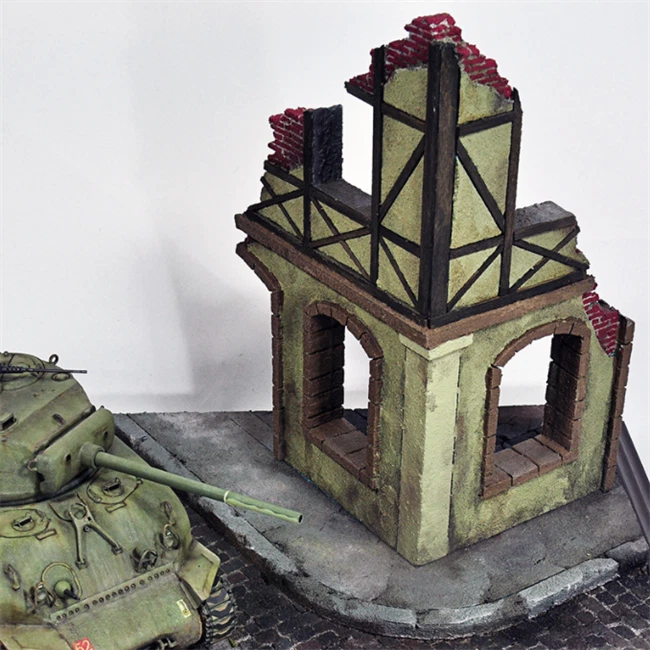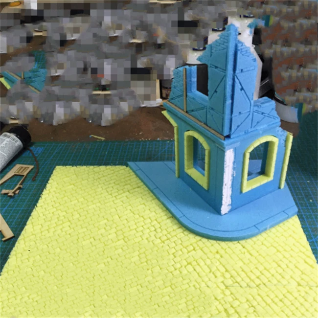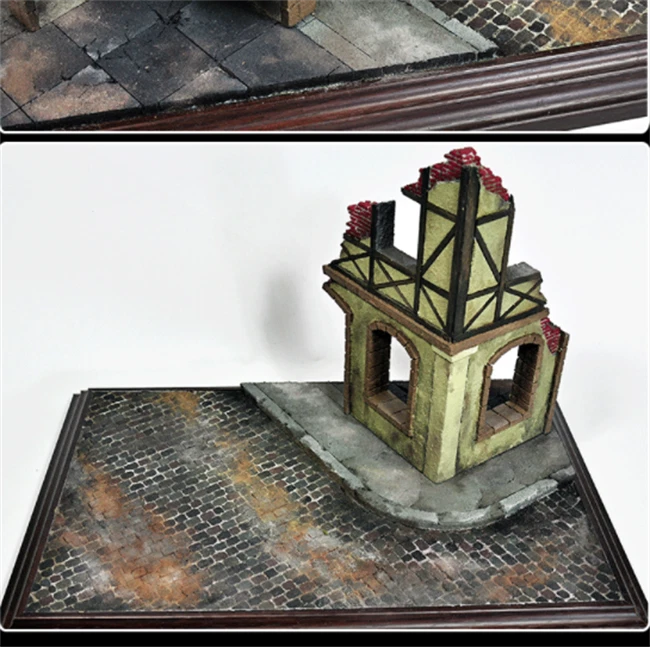 Description: DIY Building Model Kits Ruins Corner House Scale Sand Table Scenery Layout. The Scale Ruins House Can Match with Your Sand Table Building Wargame Scene. House model kit assembly required, Wooden and Foam Materials Makes the House very Simulation. Suitable 1/35 Scale Dioramas Model. Perfect for DIY Hobby and Fans. Package Size: 23.7x23.2x6.2cm / 9.33x9.13x2.44inch. Package Includes: 2 Pieces Wood Models Kits House (unpainted) 6 Pieces Foam Models Kits House (unpainted) Note: Tank model, wood display base, diy tools and pigments are NOT included in the package.