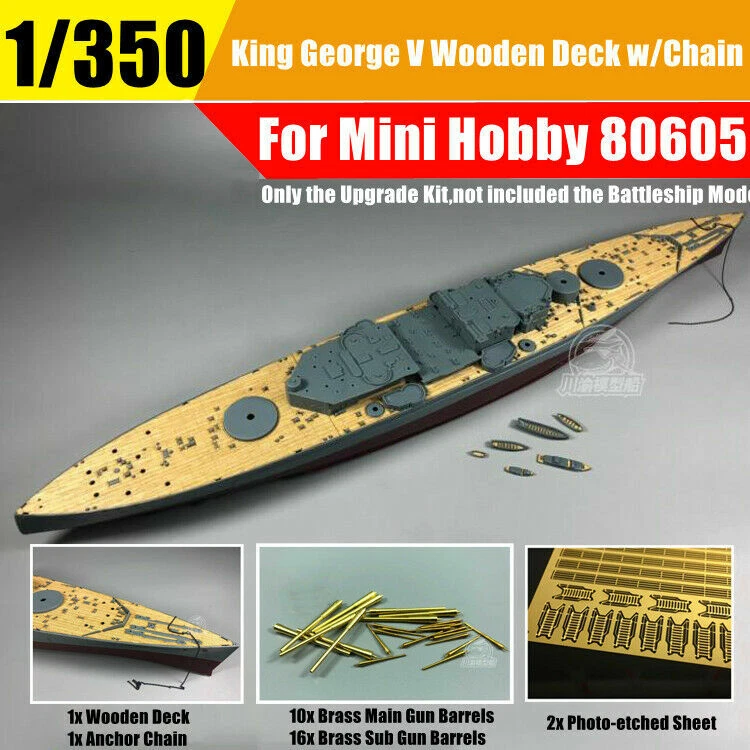 1/350 British King George V Class Basic Detail-up Upgrade Set fr MiniHobby 80605 Wooden Deck+Blacked Anchor Chain+Metal Gun Barrels+Photo-etched Sheets Detail-up Set for 1/350 Scale Mini Hobby 80605 British Battleship King George V Class Note: Please noticed this item is ONLY for selling upgrade set, the ship body in the picture is only for demonstration not for selling. The PE parts are generic/universal, are used for the general Detail-up Building.NOT 100% made specifically for this ship model.Thanks for your understanding. Package Included: 1x Wooden Deck 1x Blacken Anchor Chain 10x 365mm Brass Main Gun Barrels 16x 133mm Brass Sub Gun Barrels 2x Photo-etched Sheets Specifications: Material: Wooden/Metal Scale:1:350 Feature: Wooden deck cutting in ultimate precision laser which is perfectly adapted for 1/350 Scale Mini Hobby 80605 British Battleship King George V Every wooden deck has under restrict testing to ensure it fits with the original ship body perfectly. One Piece Masking Sheet may much enrich 1/350 Scale Mini Hobby 80605 British Battleship King George V with abundant details. Full set of brass main barrels and secondary barrels are included. Payment Delivery details Terms of sales Feedback Contact us Payment Special financing available Select PayPal Credit at checkout to have the option to pay over time. Qualifying purchases could enjoy No Interest if paid in full in 6 months on purchases of $99 or more. Other offers may also be available. Interest will be charged to your account from the purchase date if the balance is not paid in full within 6 months. Minimum monthly payments are required. Subject to credit approval. The PayPal Credit account is issued by Synchrony Bank. Delivery details 1.We do everything we can to ship your orders out as soon as possible. 2.Shipping & Handling >>>For American orders, it normally takes 7-15 days for delivery. Handle time takes 2 bussiness days. >>>For International orders, it normally takes 8-20 days for delivery. Duties and taxes may apply. Pleasa check with your country’s Custom and eBay policy for more information. Terms of sales Out 30-day Satisfaction Guarantee assures our customers that they will receive all orders promptly and exactly as described. In addition , it allows customers to return new and unused products in their original factory condition for any reason within 30 days from the date of purchase. Notice: 1.All returns must be pre-approved by Autopartm and have a return merchandise authorization (RMA) number.Unauthorized returns will not be accepted. 2.Buyers are responsible for appropriate packing, returning shipping cost, insurance and returning the item in “new” condition. Used items will not be accepted for return. 3.We will replace the returning item with an identical item, issue a full store credit or a full refund. Feedback 1.We appreciate your business and strived to improve our customer service and our commitment to quality. 2.We will leave a positive feedback immediately after payment is received. We appreciate a positive feedback as much as you do. 3.If for some reason there is any issue with the purchase, please contact us prior to leaving feedback, and we will be glad to work with you to have it resolved. Contact us Our Working Time:(GMT+8)Monday to Friday,9:00-18:00. For inquires and customer support, please send your email via ebay email system. All emails will be responded to within 24 hours during business days.