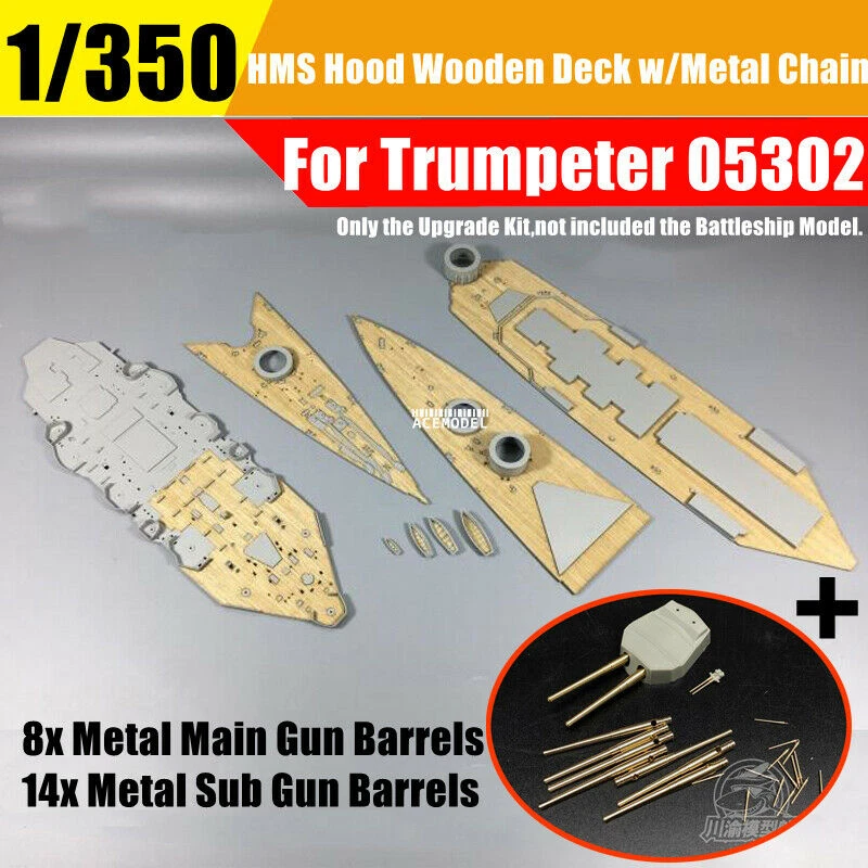 1/350 HMS Hood Battlecruiser Wooden Deck+Metal Gun Barrels For Trumpeter 05302 1/350 HMS Hood Battlecruiser Wooden Deck+Metal Gun Barrels Detail-up Upgrade Part For Trumpeter 05302 Package Included: 1x Wooden Deck 1x Blacken Anchor Chain 9x Metal Main Gun Barrels 14x Metal Sub Gun Barrels (The Model is not included,only for display.) Specifications: Material: Wooden/Metal Scale:1:350 Feature: Brand new and high quality Fine workmanship and perfect style Easy to assemble and disassemble, nice DIY item Very suitable for assembly lovers Enhancing the simulation of the model and adding fun to operation It can upgrade and modify your model to make it look more realistic Payment Delivery details Terms of sales Feedback Contact us Payment Special financing available Select PayPal Credit at checkout to have the option to pay over time. Qualifying purchases could enjoy No Interest if paid in full in 6 months on purchases of $99 or more. Other offers may also be available. Interest will be charged to your account from the purchase date if the balance is not paid in full within 6 months. Minimum monthly payments are required. Subject to credit approval. The PayPal Credit account is issued by Synchrony Bank. Delivery details 1.We do everything we can to ship your orders out as soon as possible. 2.Shipping & Handling >>>For American orders, it normally takes 7-15 days for delivery. Handle time takes 2 bussiness days. >>>For International orders, it normally takes 8-20 days for delivery. Duties and taxes may apply. Pleasa check with your country’s Custom and eBay policy for more information. Terms of sales Out 30-day Satisfaction Guarantee assures our customers that they will receive all orders promptly and exactly as described. In addition , it allows customers to return new and unused products in their original factory condition for any reason within 30 days from the date of purchase. Notice: 1.All returns must be pre-approved by Autopartm and have a return merchandise authorization (RMA) number.Unauthorized returns will not be accepted. 2.Buyers are responsible for appropriate packing, returning shipping cost, insurance and returning the item in “new” condition. Used items will not be accepted for return. 3.We will replace the returning item with an identical item, issue a full store credit or a full refund. Feedback 1.We appreciate your business and strived to improve our customer service and our commitment to quality. 2.We will leave a positive feedback immediately after payment is received. We appreciate a positive feedback as much as you do. 3.If for some reason there is any issue with the purchase, please contact us prior to leaving feedback, and we will be glad to work with you to have it resolved. Contact us Our Working Time:(GMT+8)Monday to Friday,9:00-18:00. For inquires and customer support, please send your email via ebay email system. All emails will be responded to within 24 hours during business days.