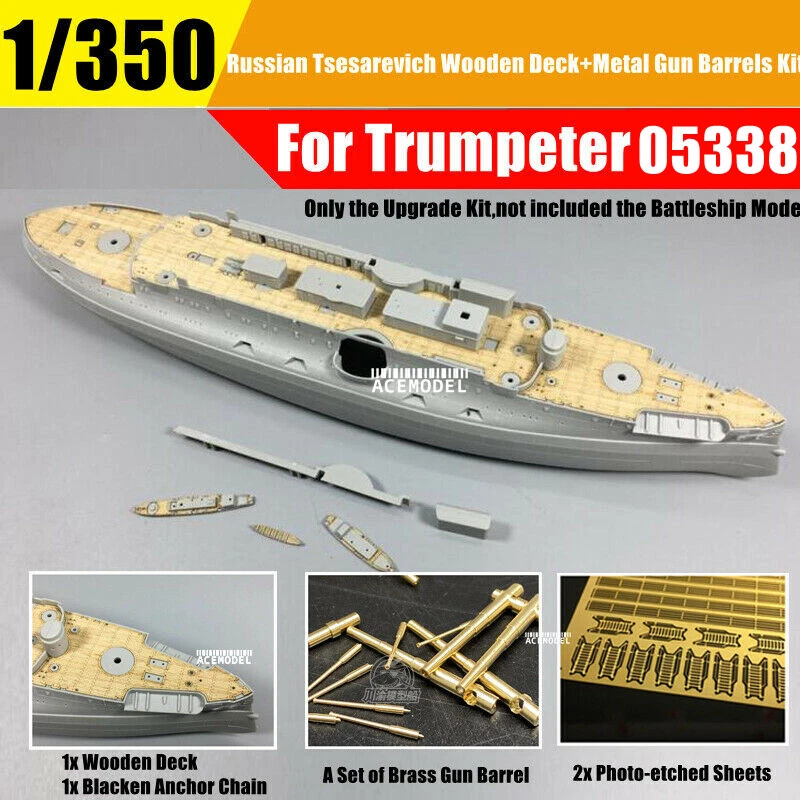 1/350 Russian Tsesarevich 1904 Battleship Super Upgrade Set for Trumpeter 05338 1/350 Russian Tsesarevich 1904 Wooden Deck+Metal Gun Barrels Detail-up Part for Trumpeter 05338 Note: Please noticed this item is ONLY for selling upgrade set, the ship body in the picture is only for demonstration not for selling. The PE parts are generic/universal, are used for the general Detail-up Building.NOT 100% made specifically for this ship model.Thanks for your understanding. Package Included: 1x Wooden Deck 1x Blacken Anchor Chain A Set of Brass Gun Barrels 2x Photo-etched Parts Specifications: Material: Wooden/Metal Scale:1:350 Feature: Brand new and high quality Fine workmanship and perfect style Easy to assemble and disassemble, nice DIY item Very suitable for assembly lovers Enhancing the simulation of the model and adding fun to operation It can upgrade and modify your model to make it look more realistic Payment Delivery details Terms of sales Feedback Contact us Payment Special financing available Select PayPal Credit at checkout to have the option to pay over time. Qualifying purchases could enjoy No Interest if paid in full in 6 months on purchases of $99 or more. Other offers may also be available. Interest will be charged to your account from the purchase date if the balance is not paid in full within 6 months. Minimum monthly payments are required. Subject to credit approval. The PayPal Credit account is issued by Synchrony Bank. Delivery details 1.We do everything we can to ship your orders out as soon as possible. 2.Shipping & Handling >>>For American orders, it normally takes 7-15 days for delivery. Handle time takes 2 bussiness days. >>>For International orders, it normally takes 8-20 days for delivery. Duties and taxes may apply. Pleasa check with your country’s Custom and eBay policy for more information. Terms of sales Out 30-day Satisfaction Guarantee assures our customers that they will receive all orders promptly and exactly as described. In addition , it allows customers to return new and unused products in their original factory condition for any reason within 30 days from the date of purchase. Notice: 1.All returns must be pre-approved by Autopartm and have a return merchandise authorization (RMA) number.Unauthorized returns will not be accepted. 2.Buyers are responsible for appropriate packing, returning shipping cost, insurance and returning the item in “new” condition. Used items will not be accepted for return. 3.We will replace the returning item with an identical item, issue a full store credit or a full refund. Feedback 1.We appreciate your business and strived to improve our customer service and our commitment to quality. 2.We will leave a positive feedback immediately after payment is received. We appreciate a positive feedback as much as you do. 3.If for some reason there is any issue with the purchase, please contact us prior to leaving feedback, and we will be glad to work with you to have it resolved. Contact us Our Working Time:(GMT+8)Monday to Friday,9:00-18:00. For inquires and customer support, please send your email via ebay email system. All emails will be responded to within 24 hours during business days.