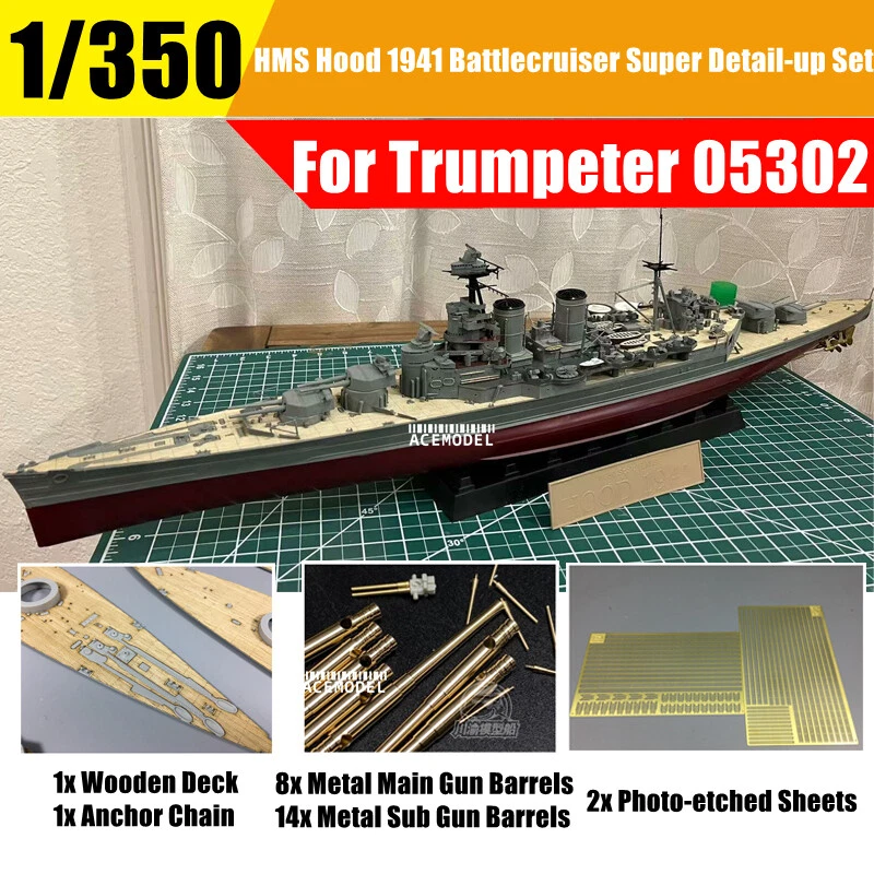 1/350 Scale HMS Hood 1941 Battlecruiser Super Detail-up Set For Trumpeter 05302 1/350 Scale HMS Hood 1941 Battlecruiser Super Detail-up Set For Trumpeter 05302 Note: Please noticed this item is ONLY for selling upgrade set, the ship body in the picture is only for demonstration not for selling. The PE parts are generic/universal, are used for the general Detail-up Building.NOT 100% made specifically for this ship model.Thanks for your understanding. Package Included: 1x Wooden Deck 1x Blacken Anchor Chain 9x Metal Main Gun Barrels 14x Metal Sub Gun Barrels 2x Photo-etched Sheets (The Model is not included,only for display.) Specifications: Material: Wooden/Metal Scale:1:350 Feature: Brand new and high quality Fine workmanship and perfect style Easy to assemble and disassemble, nice DIY item Very suitable for assembly lovers Enhancing the simulation of the model and adding fun to operation It can upgrade and modify your model to make it look more realistic Payment Delivery details Terms of sales Feedback Contact us Payment Special financing available Select PayPal Credit at checkout to have the option to pay over time. Qualifying purchases could enjoy No Interest if paid in full in 6 months on purchases of $99 or more. Other offers may also be available. Interest will be charged to your account from the purchase date if the balance is not paid in full within 6 months. Minimum monthly payments are required. Subject to credit approval. The PayPal Credit account is issued by Synchrony Bank. Delivery details 1.We do everything we can to ship your orders out as soon as possible. 2.Shipping & Handling >>>For American orders, it normally takes 7-15 days for delivery. Handle time takes 2 bussiness days. >>>For International orders, it normally takes 8-20 days for delivery. Duties and taxes may apply. Pleasa check with your country’s Custom and eBay policy for more information. Terms of sales Out 30-day Satisfaction Guarantee assures our customers that they will receive all orders promptly and exactly as described. In addition , it allows customers to return new and unused products in their original factory condition for any reason within 30 days from the date of purchase. Notice: 1.All returns must be pre-approved by Autopartm and have a return merchandise authorization (RMA) number.Unauthorized returns will not be accepted. 2.Buyers are responsible for appropriate packing, returning shipping cost, insurance and returning the item in “new” condition. Used items will not be accepted for return. 3.We will replace the returning item with an identical item, issue a full store credit or a full refund. Feedback 1.We appreciate your business and strived to improve our customer service and our commitment to quality. 2.We will leave a positive feedback immediately after payment is received. We appreciate a positive feedback as much as you do. 3.If for some reason there is any issue with the purchase, please contact us prior to leaving feedback, and we will be glad to work with you to have it resolved. Contact us Our Working Time:(GMT+8)Monday to Friday,9:00-18:00. For inquires and customer support, please send your email via ebay email system. All emails will be responded to within 24 hours during business days.