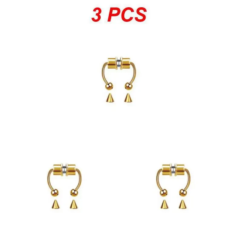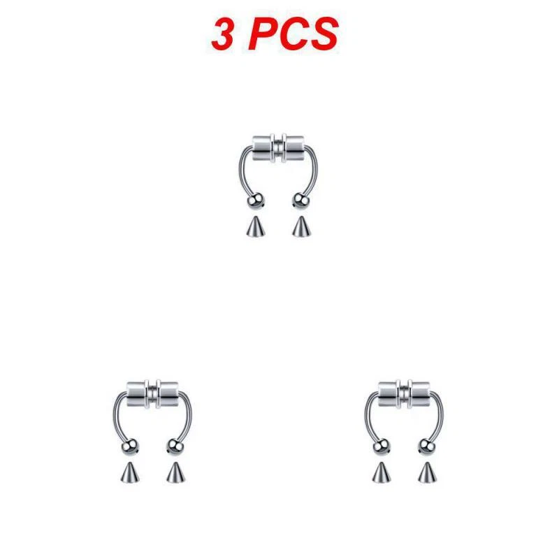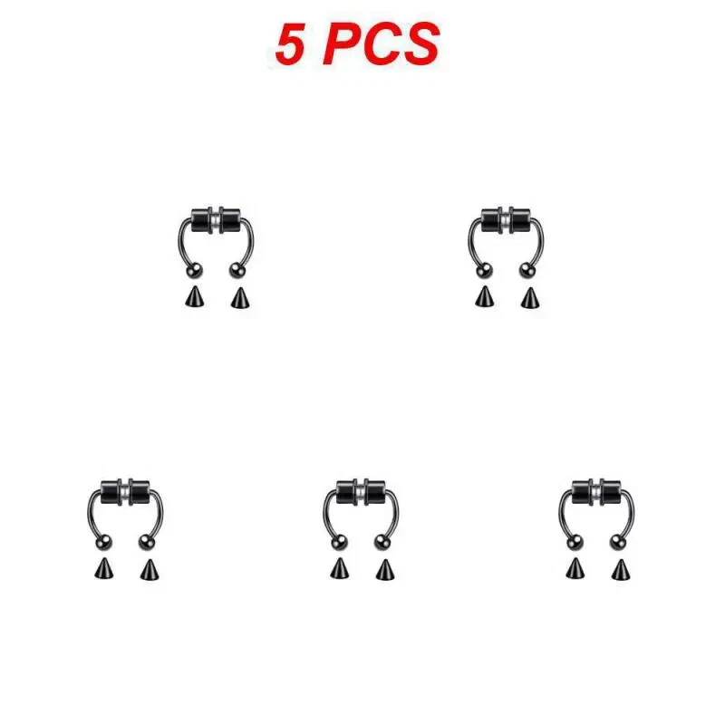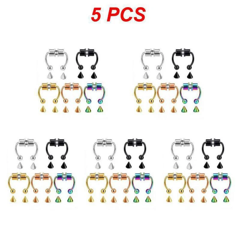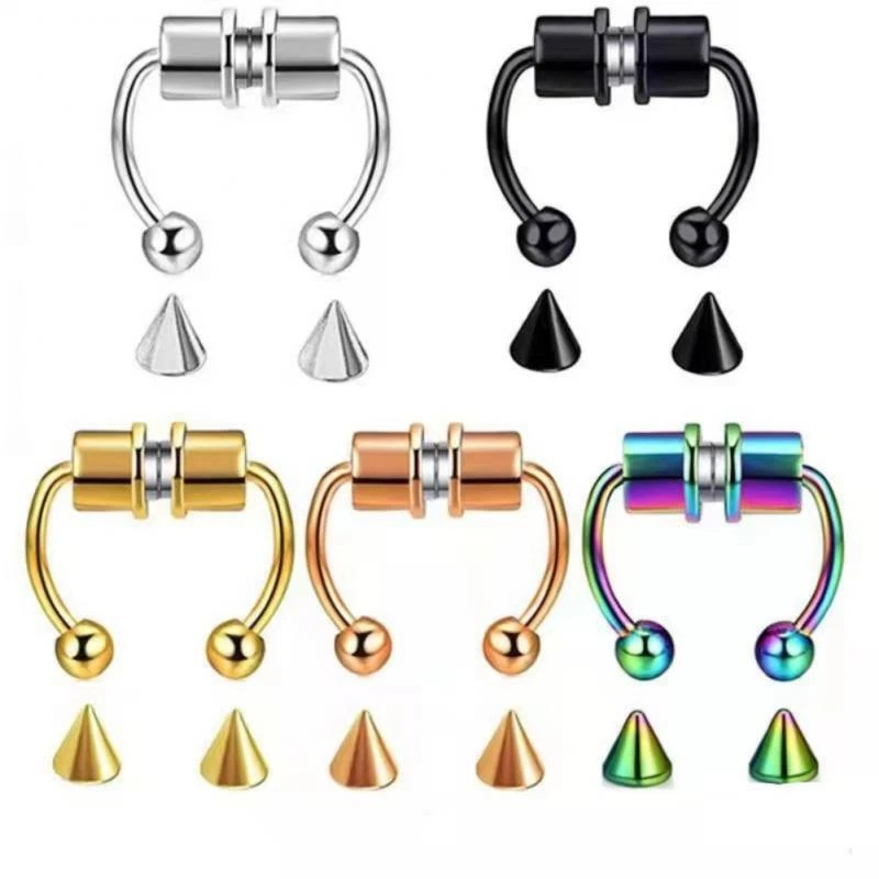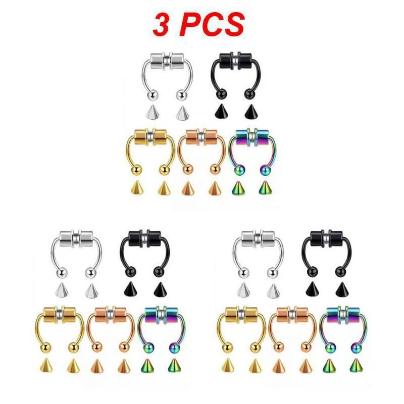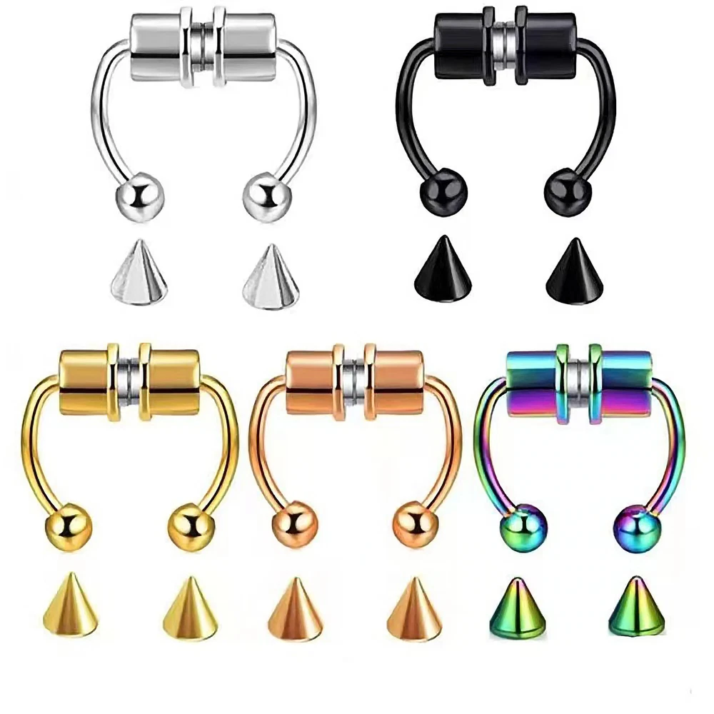 1/3/5PCS Stainless Steel Magnet Nose Ring Horseshoe Ring Nose Clip Non-pierced Nose Hoop Magnetic Nose Nail piercing nariz Description: 【Stainless steel】 These fake nose rings are made of high quality 316L stainless steel, are hypoallergenic, nickel-free and lead-free. They are safe to wear and do not harm your skin. They have a highly polished, smooth surface and are easy to wear and take off. 【Unique design】 These fake nose horseshoe rings are so cool and charming that you will be attractive in the crowd. Do not worry about the magnetic force, they are comfortable enough to be worn all and do not fall off easily. 【Available sizes】: (1.2mm); Inner Diameter: 10mm (3/8); Ball Size: 3mm, Replacement Tip Size: 3mm 【Great gift】 Ideal gift for horseshoe rings with false nose for your wife, husband, daughter, friends on birthdays, anniversaries, Valentine's Day, Mother's Day, etc. Popular artificial nose rings for women, surprise gift for her, to remind the special of how much you care. 【Frequent occasions】 You can coordinate these non-penetrating fake septum rings with your clothes for daily wear and work. They are also suitable for other occasions such as party, dinner, travel etc. Just show your own style and make you shine. Specifications: 【Name】:Stainless steel nose ring 【Color】: silver, black, color, gold, rose gold, blue (customized) 【Size】: Steel ball 3mm sharp cone 3mm The distance between the two balls is about 10mm (there is a slight error in manual measurement, subject to the actual distance) 【Weight】: 1.8g/piece 【Packing】: opp independent packaging Package Included: 1*Nose ring 2*Steel cone