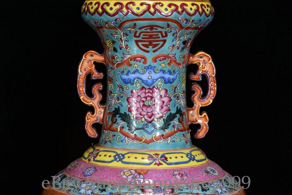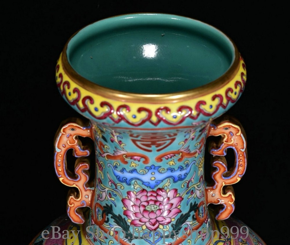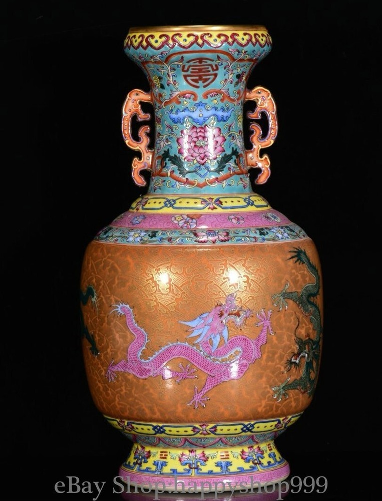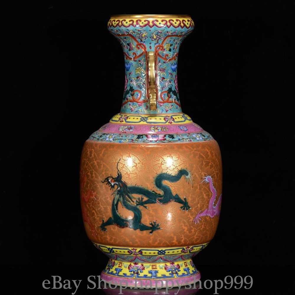 13.6" Chinese Qianlong Marked Enamel Porcelain Dragon beast 2 ear Bottle Vase You are bidding for a 13.6" Chinese Qianlong Marked Enamel Porcelain Dragon beast 2 ear Bottle Vase. It is in good condition without broken or fixing as photos showing and rare style from antique market. This is a great piece of valuable collection, a valuable personal alter or a very good present. the handwork is very fine with incredible detailling. Don't miss out this chance to get it . All the items we are showing is only one available and You will get the same one as photos. Condition Material : Porcelain Origin : Chinese Style : Same as photos showing Size : High 13.6 Long 6.8 Breadth 6.8 (inch) Weight : 3.5 KG----included the weight of packing materials Shipping cost by EMS or SF express (5-12 days) : Free Shipping. Terms of 3 Sale We recommend the combine shipping and wholesale order , If you won more items once that we will give you a 5-10% di7scount off the price. Also We encourage you to make an offer if you're interested. Each piece is a testament to traditional craftsmanship and will make a stunning addition to any collection or home decor. Our priority is to ensure your satisfaction. Feel free to reach out with any questions or for additional information. Thank you for considering our items. About us We are business in Asian Antique and old collectable items over 12 years. My father is running them from China, korea, Singapore,Japan and Nepal every year and hold many rare items in stock. They are inculding the diference style porcelian , Cloisonne , Bronze。 Pottery . Silver also jade carving from difference time period. We are looking towards to have the friends online for working each other and learning. Thank you. Contact Me If you're in any way dissatisfied with your purchase or any problem of your order condition , Please let me know through "MY MESSAGES" or "Ask Seller Questions" though eBay. We will quickly to answer and try best to resolve it well for your happy . We are committed to ensuring that you are completely satisfied with every transaction. 100% Satisfaction guaranteed ! We will reply your mail with in 24 hours normally. Thanks for looking! We believe you will enjoy with our other items too !