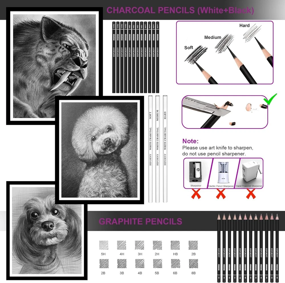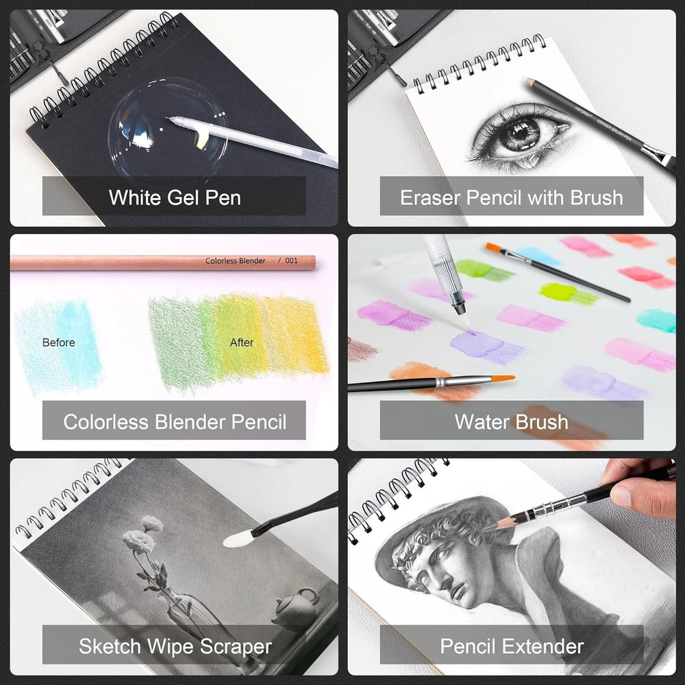 136-Piece Art Pencil Set in Zipper Case ‹ › ‹ › ‹ › ‹ › ‹ › ‹ › ‹ › ‹ › ‹ › 136-Piece Art Pencil Set in Zipper Case Discover Artistic Excellence Unleash your creativity with this comprehensive 136-piece art pencil set—perfectly designed for artists of all levels! Complete Drawing Supplies Featuring 9 types of professional drawing pencils, this set includes: 12 charcoal pencils for rich, deep sketches. 12 graphite pencils varying from H to B degrees for versatile shading. 24 black edition colored pencils delivering vibrant hues. 24 watercolor pencils for seamless blending. 12 metallic colored pencils to add a touch of shimmer. 3 white charcoal pencils for highlighting. 2 woodless graphite pencils for smooth application. 1 colorless blender pencil to blend colors effortlessly. 1 eraser pencil with brush for precision erasing. Extra Drawing Sketching Supplies Kit Includes essential accessories for a complete experience: 3 graphite sticks and 3 charcoal sticks for varied textures. 3 blending stumps and 2 sketch wipe scrapers for flawless blending. 20 replacement heads, 1 kneaded eraser, 1 vinyl eraser, 1 white gel pen, and 1 water brush pen. 2 brushes, 1 sandpaper block, 2 sharpeners, and 1 art knife. Pencil extender to maximize use. Unique Multi-Color Sketchbook Set Each sketchbook offers a unique experience: Sketchbook (6 x 9", 100GSM, 50 Pages: 30 white, 10 toned tan, 10 black) A5 coloring book (160GSM, 20 unique illustrations) with postcard functionality. A5 watercolor book (300GSM, 12 Pages) offers excellent water absorption and clean lines. Artist Quality Pencil Drawing Set Pre-sharpened leads ensure smooth operation and durability. Perfect for shading, blending, drawing, sketching, doodling, and coloring. Bright and vibrant colors aid in creating stunning visuals. Portable Travel Size Pencil Case Lightweight and durable zipped case (12"x 8.74"x 2.75") for easy transportation. Designed to keep your art supplies organized and protected, whether at school or on the go. Giftable Art Set This art pencil set makes an ideal gift for artists, students, or anyone with a passion for creativity. Perfect for holidays, birthdays, graduations, or any special occasion. Encourage artistic expression with this remarkable set! Elevate your artistic journey—order your 136-Piece Art Pencil Set today! Shipping Free & Fast Shipping - We offer free shipping to most of the USA with a normal delivery time of 3-10 business days. However, due to various situations, additional delivery time (up to 3 weeks) may be required for some items. Alternative Carriers - We may use alternative carriers (e.g. USPS, FedEx, UPS, etc.) to ensure your package arrives safely and on time. Due to the use of multiple carriers, we are unable to provide a tracking number automatically. Handling Time - Orders are processed and shipped within 1-5 business days of receiving cleared payment. Shipping Restrictions - Shipping to Alaska, Hawaii, Puerto Rico, Guam, and other US territories may incur shipping charges or delivery restrictions. Please contact us before ordering, or your order can be refunded/cancelled. State Restrictions - There may be restrictions based on your state of purchase. For example, certain items may not be shipped to California due to state regulations. Contact for Tracking Updates - If you require tracking updates or have any concerns about the delivery of your order, please feel free to contact us, and we will be happy to assist you. Return 30-Day Hassle-Free Returns - We want you to be completely satisfied with your purchase. If you are not, you can return the item within 30 days of receiving it for a full refund or exchange. Easy Return Process - To start a return, simply contact us and we will provide you with a prepaid return shipping label and detailed instructions. Restocking Fee - There are no restocking fees for returns. However, the buyer is responsible for return shipping costs if the return is not due to a seller's error. Refund Processing Time - Refunds will be processed within 5 business days of receiving the returned item in its condition. Payment We accept all major credit cards, PayPal, and Apple Pay for your convenience. Your payment information is secure and encrypted to ensure a safe and seamless transaction. Please complete your payment within 3 days of purchase to avoid any delays in shipping. Feedback Your feedback is extremely important to us. We strive to provide the best products and customer service possible. If you are satisfied with your purchase, please take a moment to leave us a positive review. If you have any concerns or issues with your order, please contact us before leaving negative feedback. We are committed to resolving any problems and ensuring your satisfaction. Contact Us If you have any questions or concerns, please feel free to out to our customer support team. You can contact us through the eBay messaging system. We are available Monday to Friday, 9:00 am to 5:00 pm EST, and we will do our best to respond to your inquiry within 24 hours. Buy it now and enjoy a pleasant shopping experience! Unit Quantity: 3.78 Color Style: Single Color,Black Type: Pencil Set Color: Black