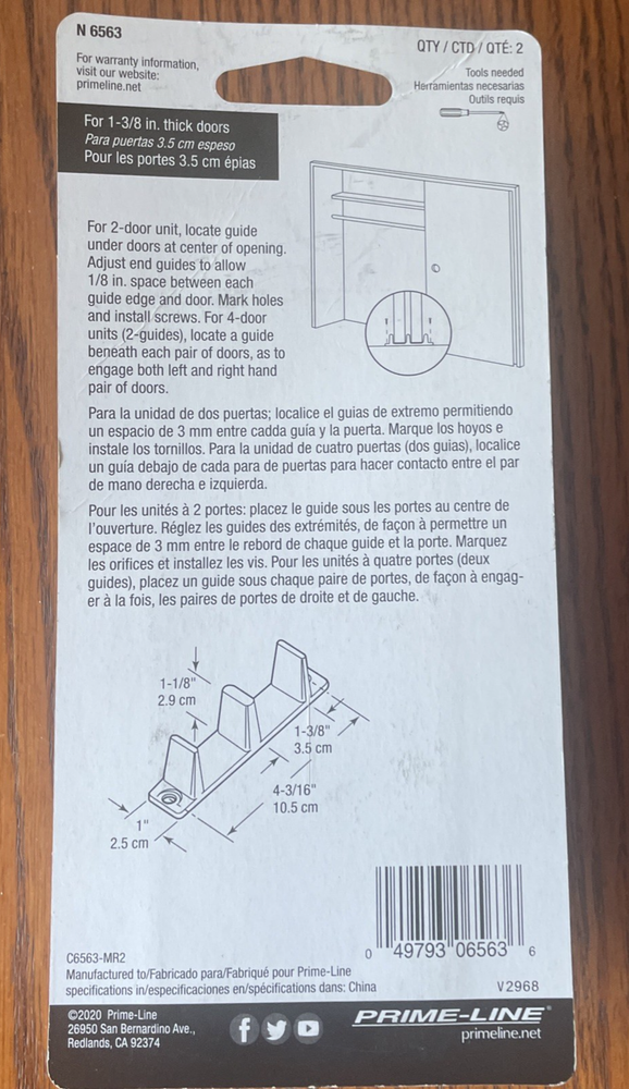 The N 6563 Plastic Sliding Closet Door Guide is designed for 1-3/8 inch thick doors, providing a modern and stylish solution for your sliding door needs. This white plastic guide is easy to install and requires no batteries or assembly, making it convenient for both DIY enthusiasts and professionals. With a warranty against manufacturing defects for 1 year and dimensions of 4.75 x 1.12 x 1 inches, this durable and reliable product ensures smooth operation and functionality for your sliding closet door. This item was opened but not used. It is in good condition. Please refer to the pictures for the best details of the exact item you are receiving. Photos are NOT stock photos!