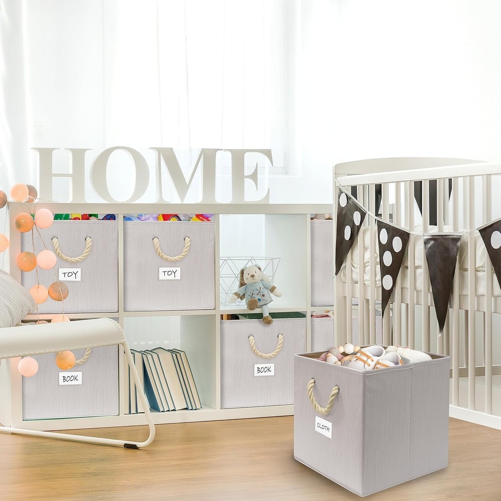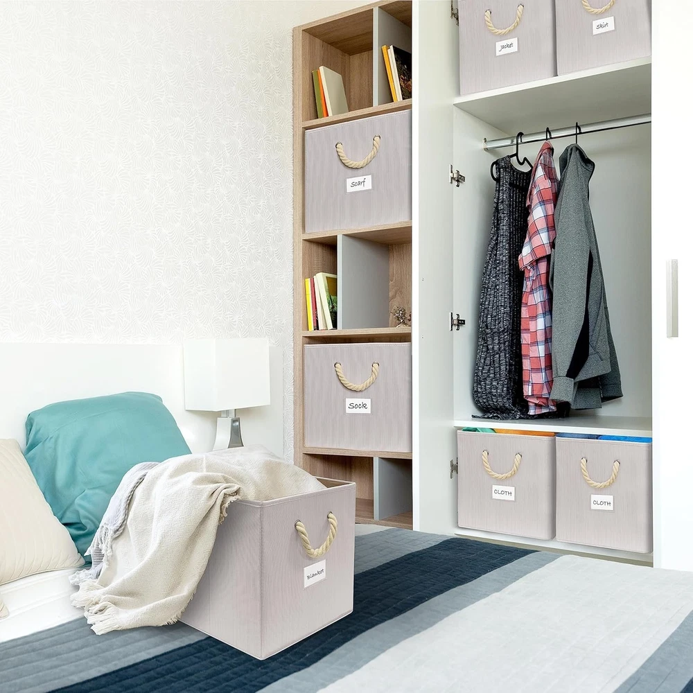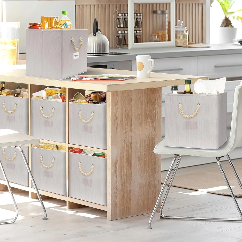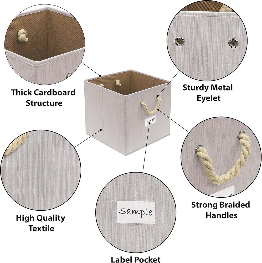 Collapsible & Space-Saving: Folds easily when not in use to maximize storage space, perfect for seasonal or occasional use Reinforced & Durable: Made with 5 sturdy cardboards, including a reinforced bottom, to maintain shape and prevent deformation Label Pocket for Easy Organization: Features a clear front label pocket for quick identification and organized storage Lightweight, Sturdy & Easy to Carry: Made of high-quality fabric with braided side handles for effortless lifting and moving Perfect Size & Versatile Use: Measures 13'' L x 13'' W x 13'' H , ideal for closets, shelves, and cube storage organizers