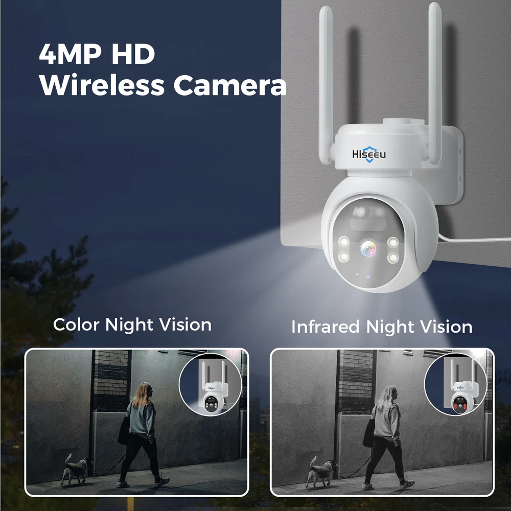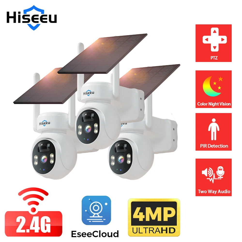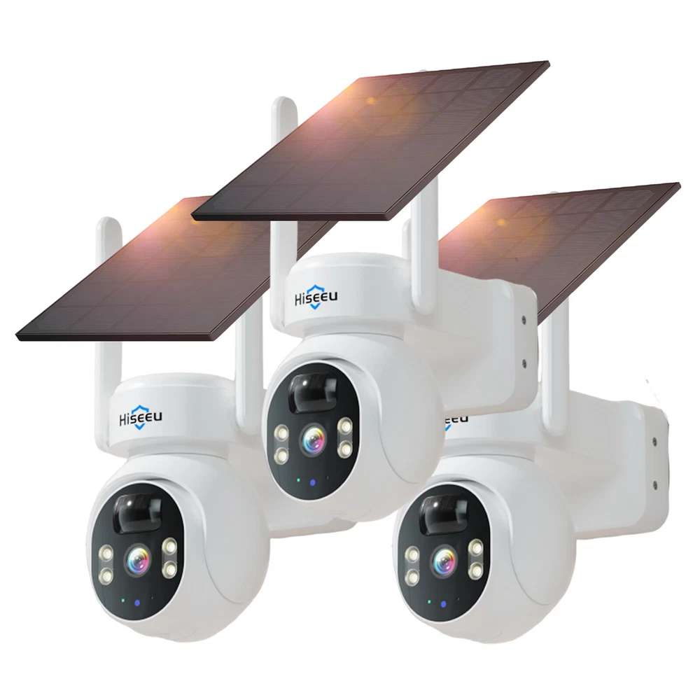 1~3PCS Hiseeu WIFI Solar Panel Battery 4MP Wireless PTZ Security Camera Outdoor