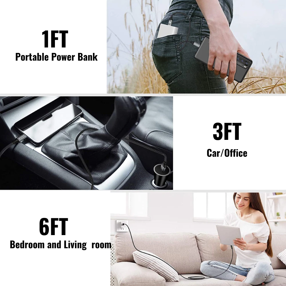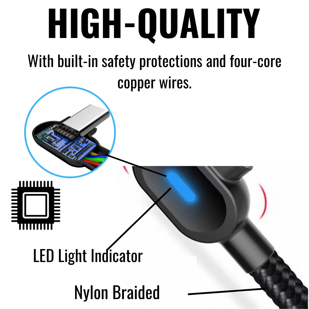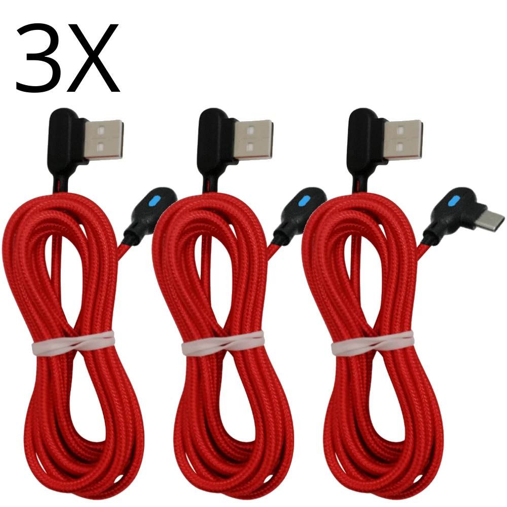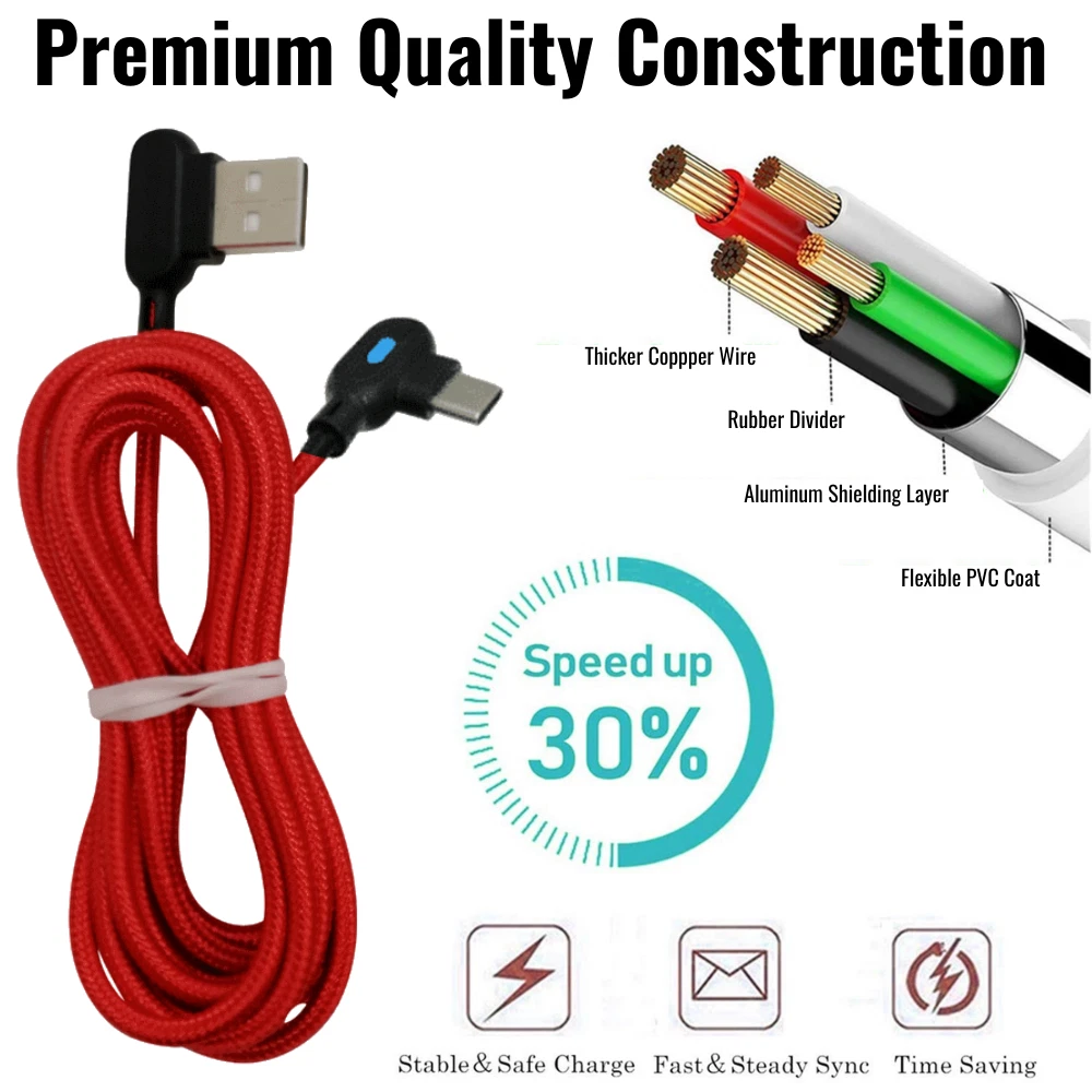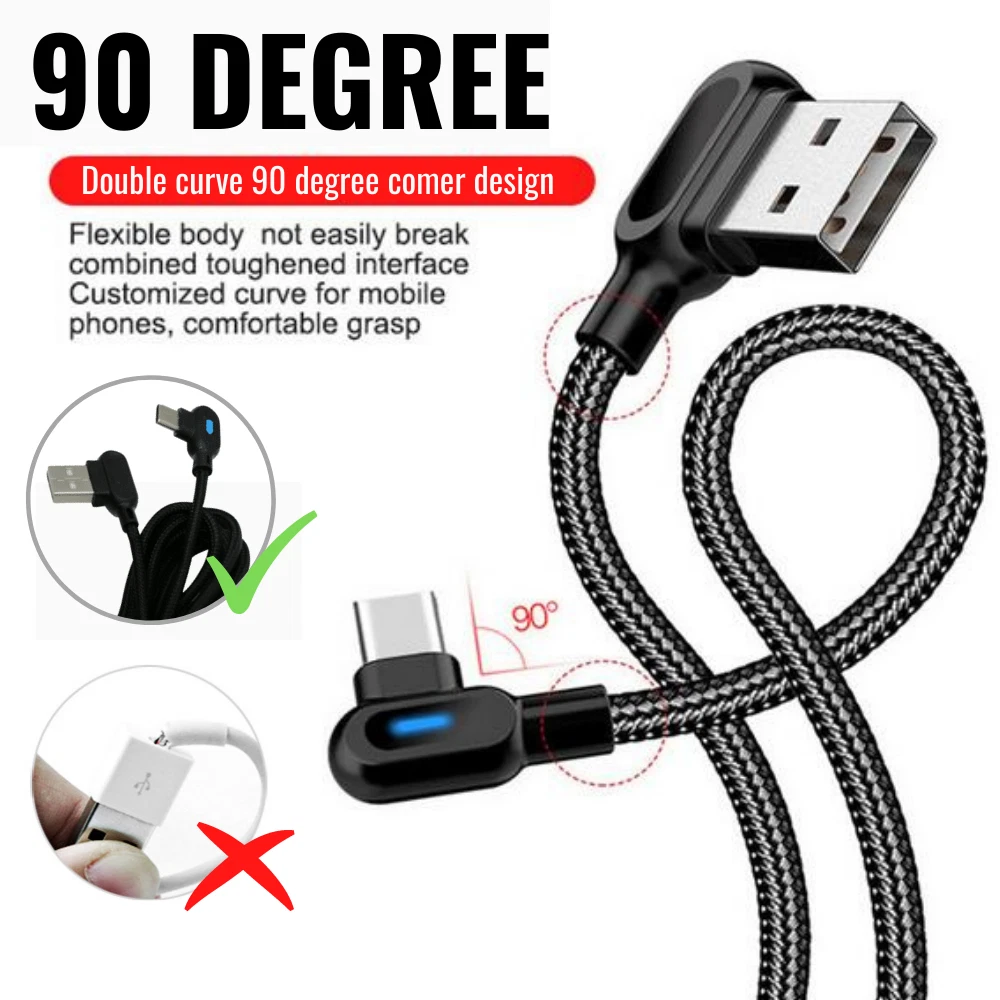 Features: 90 Degree Charging Cable: 6ft long is ideal for the long distance usage at home, in your office, car ,on your travel and more places. 2A FAST CHARGE: Reinforced with Aramid Fiber and 3.8mm Wire Diameter Copper Wire Making Charging Cable Much Faster and Stronger than Conventional Charging Cables with Thin Power Wire. SUPERIOR DURABILITY: 90 degree Cable Nylon-braided Cord with Aluminum Casing has a ultra-high 5000+ bend lifespan. Won't Splitting or Breaking Easily. The LED indicator 90 degree angle design, charging and playing at the same time. Ensures complete charge and sync Premium Quality Made up of premium quality material. Cable made up Copper wire covered with Nylon Braided Jacket for superior durability and protection of the wire. Specification: Color: Black/Red Current: 2A Length:3ft/6ft Material:Nylon Braided Design: with LED indicator, 90° Double Elbow Maximum charging current : 2A Function: Charging+Data transmission Products include: 3ft 3x cables/6ft 3x cables/3ft 1x cables/6ft 1x cables (There are two colors of black and red, according to your choice, send the item) COMPATIBLE MODELS: Type-C Cable Compatible with Most USB Type-C devices such as: For Samsung Galaxy S20/S20+/Z Flip /X cover Pro/Note10 Lite/S10 Lite/S10/S10 plus/S9/S9 plus/S8 plus/S8/S8 Active/S20/Samsung Galaxy Note 10/Note 9/Note 8/Samsung Galaxy C9 Pro/C7 Pro/C5 Pro/Samsung Galaxy A10e/A20e/A7/A50/A3/ For Google Pixel 4/Pixel 4XL/Pixel 3/Pixel 3xl/Pixel 2/Pixel 2 XL/Google Pixel/Pixel XL/Pixel C/Google Nexus 5X/ 6P/ For LG G7 thinq/LG G6/LG G5 /LG G5 SE / V30/LG V20/LG Q8/LG V40/LG G8 For HTC U11/Ultra/U Play/HTC 10; OnePlus 5T/5/3T/3 For Nintendo Switch; For Go Pro Hero 5/Hero 6/Hero 7 For Sony Xperia XZ Premium/L1/XA1 Ultra/XA1/XZs/XZ/X Compact For Moto Z2 Force/Moto Z2 Play/Moto Z/ Moto Z Force For Microsoft Lumia 950 / 950 XL For Huawei P4D PRO/P30 PRO/MATE30 PRO/MATE20 PRO/P20 PRO/P30/MATE20X/MATE30/MATE20