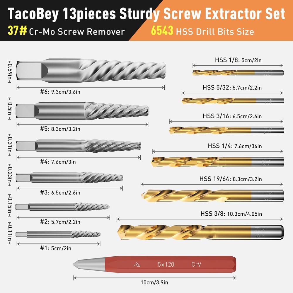 $ 12.3814Pcs Screw Extractor & Left Hand Drill Bit Set for Bolt Removal
