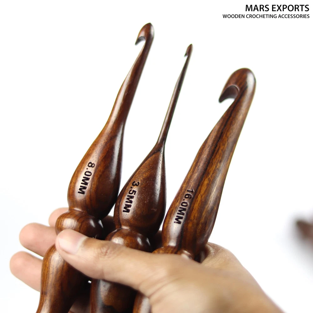 These wooden crochet hooks are a dream to work with! The smooth rosewood feels luxurious in your hands, and the ergonomic design makes stitching comfortable for hours. The set covers all the sizes I need, from delicate lace to chunky yarns. The craftsmanship is outstanding—no snagging or rough edges. Perfect for both beginners and experienced crocheters who appreciate quality tools. A must-have for anyone serious about their craft!