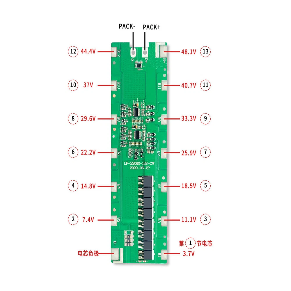SAFE & SECURE SHOPPING 100% SATISFACTION GUARANTEED FAST SHIPPING 13S6P 48V Li-ion Battery Case Holder with Nickel Kit For E-bike Battery Pack AAU Product Description 13S6P 48V Lithum Battery Box: Product Description: Model: 13S6P 48V Lithum Battery Box Application: For 48V E-bike Battery Use Dimension (Outside): 250*71.6*141.7MM Meterial: ABS + PC Bracket: 13*6X2 Strip Nickel : 13*6 X14 Capacity of cell: Max. for Pieces 18650 cells(13*6=78) Application: 48V E-bike Battery,12V 48VUninterrupted Power Supply etc.... Notice: 1.This order not inclduing the 18650 Battery . 2.This can design foor yourself,like 48V all ok,and also design the battery capacity like 10Ah 20Ah even 21Ah also can fit. 3.If you need customize,welcome to contact us,thank you. 4.The bundle 4 is only the BOX,not including BMS Board. 48V 30A Lithium Battery BMS Description: Model: 13S 30A Lithium Battery BMS Board Nominal Voltage: 52V Charging Voltage: 54.6V Discharging Current: 20A Instantly protect Current:70A Single Battery Over-discharge voltage:2.80±0.05V Single Battery Over-charge voltage: 4.25±0.05V Continuous Charging Current:10A Charging Balance Current:46mA Size:220*61*6mm Feture: Overcharge protection, over-discharge protection, short-circuit protection, balanced charging, temperature protection, integration scheme, stable performance. Application: for 13S Lithium Battery(18650/26650/32650/32700/Lithium Iron Phosphate Cell) Use in Solar Panel or Electric Boat Uninterrupted Power Supply 48V 52V Notice: 1.Apply to Lithium Battery Pack Use,cannot use in Lifepo4 Battery. 2.Only the BMS Board,Battery Not Including! Packing List: 1* 48V 13S6P Lithum Battery Box 1*13S 48V 30A BMS Payment Shipping Returns Contact US Payment Payment must be completed within 5 days. If you have any problems about payment, please contact us via ebay message. Shipping We only ship to confirmed ebay Order addresses. Please comfirm that your Order address is in line with your shipping address. Please kindly note that the combined shipping is not provided because the shipping fee is calculated by weight. Also, the each additional item means exactly the the same color and size. It takes about 7-15 working days to US; about 10-30 working days to other countries. Transit time may be a little delayed because of the bad weather and customs inspection. If you do not receive your item within 30 working days since payment finished, please contact us immediately for further assistance. Returns Items can be returned for exchange or refund within 30 days from the date you receive your merchandise. We are not responsible for any purchase after this 30-day period. Return shipping is the responsibility of buyer unless the return is a result of our mistake (i.e., your receive the wrong item). We will pay for shipping replacement back to you if an exchange is requested. Contact US Customer satisfaction is very important to us and our feedback rating reflects this satisfaction. If you have any questions, Our customer service staffs welcome feel free to contact us by EBAY message box. We strive to answer all questions and resolve any problems as quickly as possible. Copyright © 2022 Tongtool On Dec 11, 2024 at 23:49:38 PST, seller added the following information: