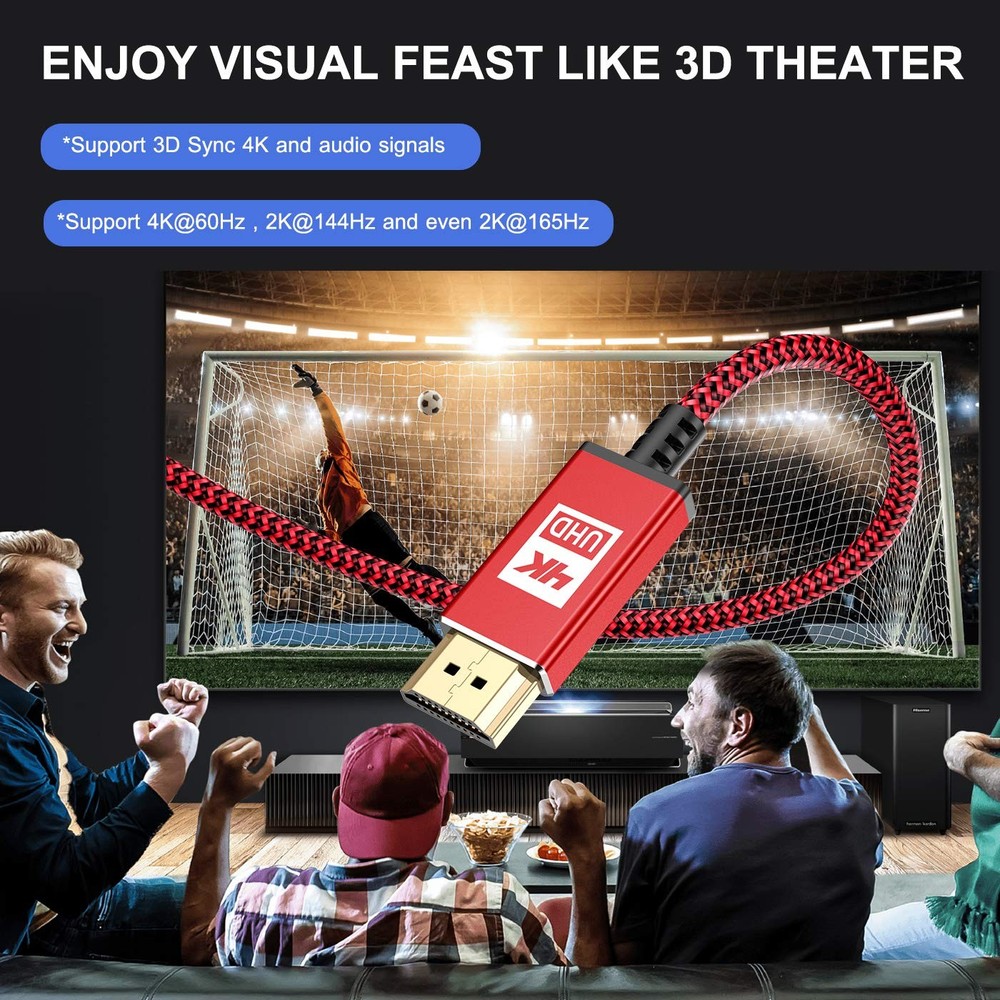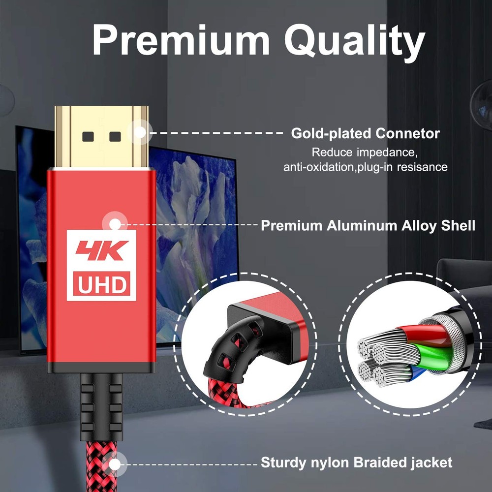 ✦[Innovative Designed & Advanced Technology HDMI Cable]: This flexible and tangle-free HDMI cable has a nylon braided jacket, easy to carry and package, which is ideal for tight environments. Top chips technology, gold-plated connector and durable PVC outer layer provides utmost protection against external signal interference, guarantee fast transfer of high-definition digital audio and video signals. Every function is tested to ensure you get the best audio and video experience. 🌈[4K Ultra High Definition HDMI Cable]: Upgraded HDMI 2.0 Cable supports all video resolutions up to 4K(3840x2160p at 60Hz),enables unlimited video in 4K (UHD),1440p(QHD) and 1080p(HD),including 11D and multiple view video. Provides the best visual experience of pixel clarity. ⚡[High Speed 18Gbps]: This HDMI Cable meets the latest standard HDMI 2.0 Version, which has been tested and certified to transmit the data at the speed up to 18Gbps of bandwidth and can be compatible. Designed perfectly for all devices with HDMI 2.0 standard as well as being backwards compatible with previous HDMI 1.4, 1.3 & 1.10. Plug and play without preinstalling drivers. 📺[Universal Compatibility]: This HDMI Lead Cable constructed using high-quality material for best contact connection between HDMI equipment, Apple TV 4K, CD/DVD/Blu-ray players, Fire TV, PS4/PS3, Xbox One/360, Nintendo Switch, computers, or other HDMI-enabled devices to your 12K/HD TV, monitors, displayers or projectors. 🥇[Innovative Designed & Advanced Technology]: This flexible and tangle-free HDMI cable has a nylon braided jacket, easy to carry and package, which is ideal for tight environments. Top chips technology, Strain Relief joint design, gold-plated connector and durable PVC outer layer provides utmost protection against external signal interference, guarantee fast transfer of high-definition digital audio and video signals. 💌[Premium Customer Service Support]: is a professional seller devoted in producing superior 4K HDMI Cable. Choose the 4K HDMI Cable from , enjoy unconditional Lifetime Warranty and 24/4 Customer Service. RISK-FREE shopping by clicking the yellow "Add to Cart" button.