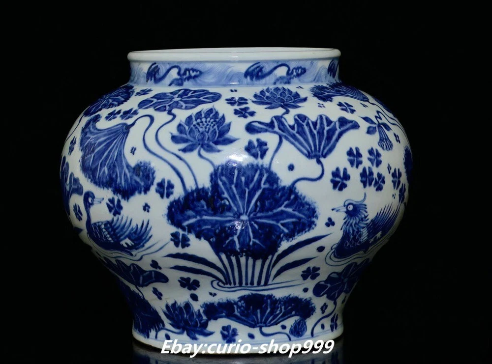 **** Welcome to our antique & Collectable Shop : Porcelain**** Description: Here is 13"Old Dynasty Blue White Porcelain Lotus leaf MandarinDuck Animal Crock Pot Jar. It is in good condition, and was created by skilled craftsmen in traditional style with fine handcrafts.This is a great piece of valuable collection, a valuable personal alter or a very good present. the handwork is very fine with incredible detailling. Don't miss out this chance to get it.Wish you good luck! . Material : Blue White Porcelain Size : Heigh t 11.4 Long 12.9 B readth (inch) Condition Perfect Condition. Perfect, with no scratches, flaws or repairs. Weight: 3.7 KG----included the weight of packing materials Shipping cost to all over the world countries in Free Honored Customers: We are selling the collectibles products and crafts in Beijing ,China since 1993 and collected them all over the world all the time . In our shop the bronze sculpture, animal, vase, urn, flowerpot,Incense Burner.Table chair sets. Militaria goods. buddha statues, Bodhisattva Statues, Buddhist Ritual Items etc is our speciality .Many of the items we sell come from our own personal collection and have been in our family for a very long time .My great-grandfather was the first in this family to start collecting art & antiques when he still lived in San Xi and Tibet around 1922 ,some of the paintings he once collected can now be seen in museums around the globe.We won't make money from t he shipping cost, if you dislike the item when you receive it,we can refund all of your money to you within thirty days. Please confidence for bidding . We recommend the combine shipping and offer you an big price discount if you order more items together ! 2024.07.08 四 号