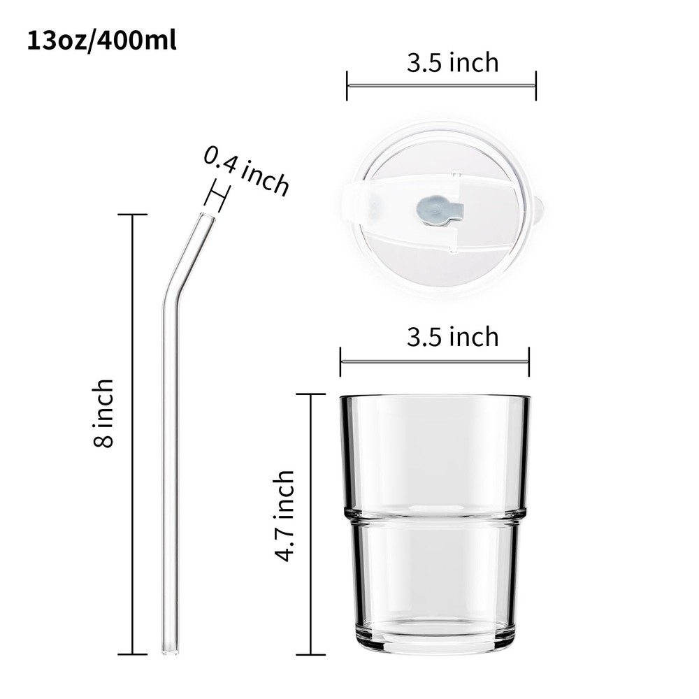 13oz Glass Tumbler with Straw and Lid, Reusable Iced Coffee Cup
