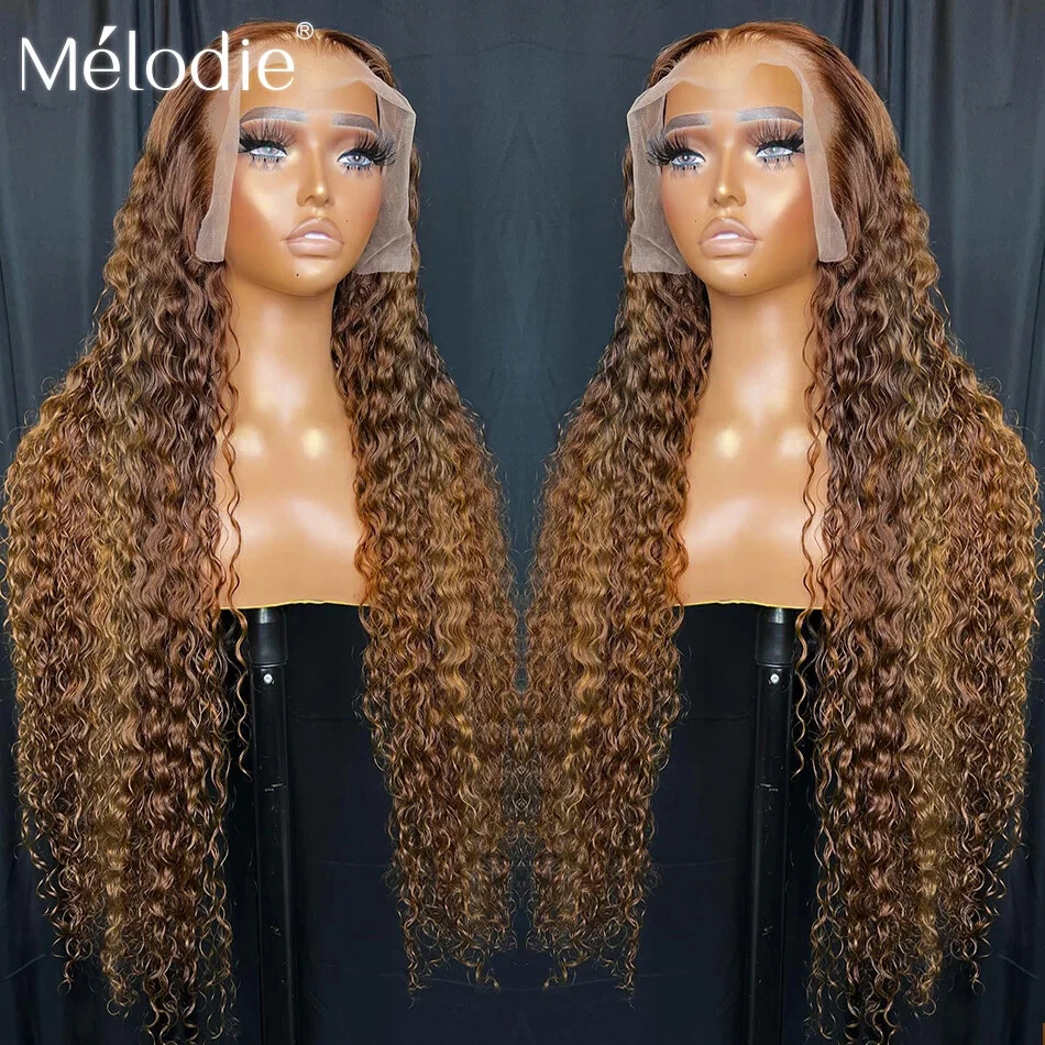 30 40 Inches 13x4 Glueless Lace Frontal Wig Highlight Ombre Brown Deep Wave HD 13x6 Lace Front Human Hair Wigs Curly 250Density