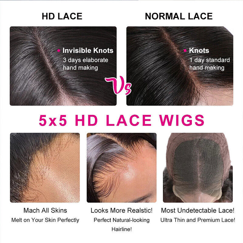 13x4 13x6 Short Bob HD Brazilian Human Hair Wig with 5x5 Pre-Plucked Closure