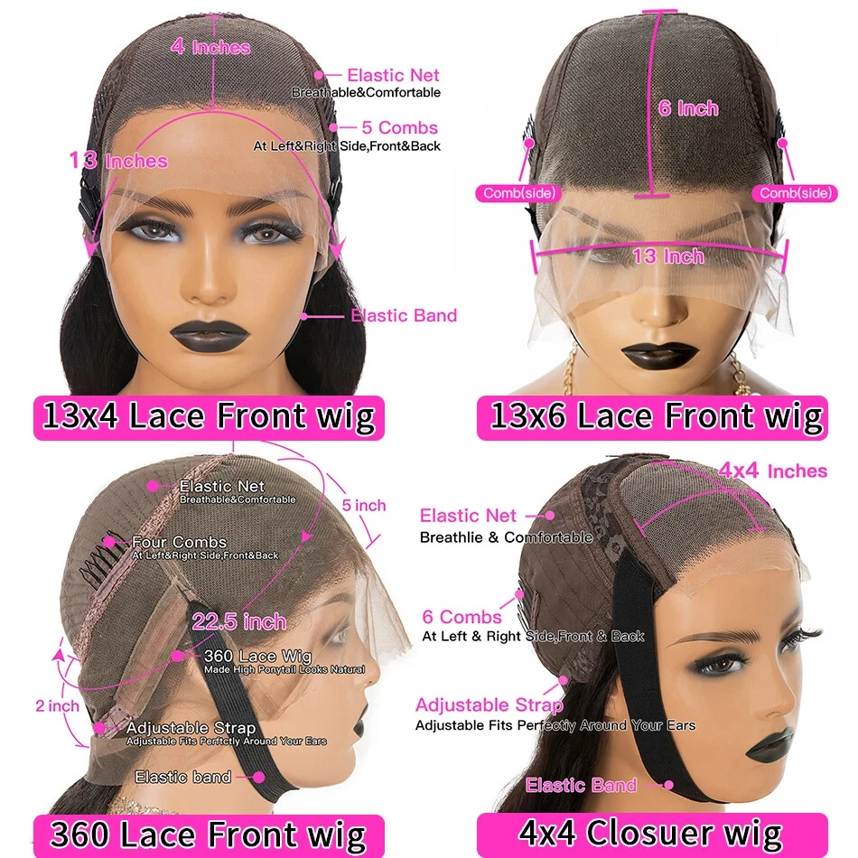 Product Information Cap Size: Medium Size Density: 180% lace size: 4x4 13x4 13x6Lace Wig Weight: 100-250g depends on the length Full End Hair Lifepan: No tangle, No Shedding, Low Maintenance,12-34 Months Life with Proper Care shipping Time: 3-7 Days worldwide Free Shipping