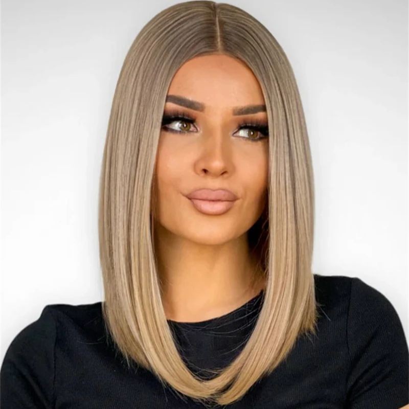 $ 192.41Ombre Ash Brown with Blonde Highlights 13x4 Lace Front Wig 100% Human Hair Wig