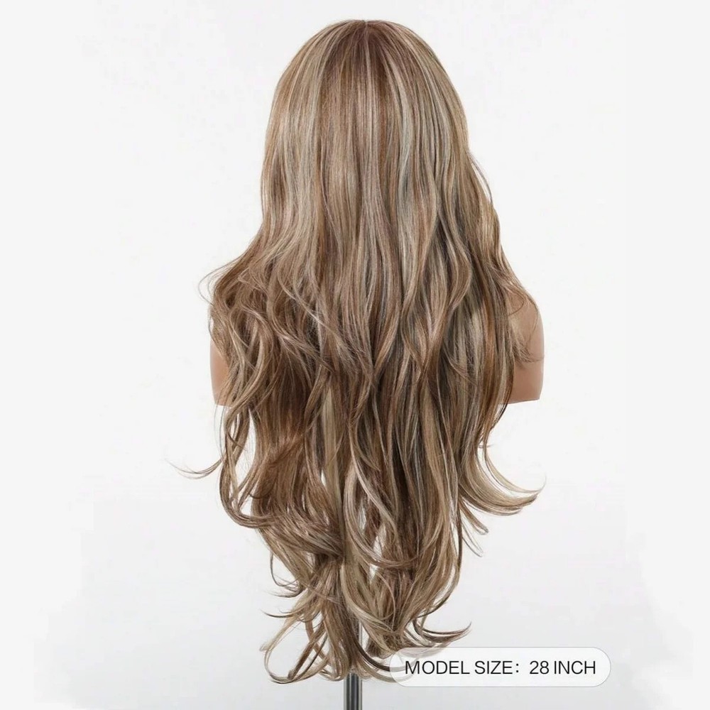 13x6 HD Body Wave Lace Front Wig Brown Highlight Blonde Hair Synthetic Wig With Baby Hair For Women Preplucked Lace Glueless Wig Features: 100% High-quality synthetic hair. Made with new high-tech technology, it has the same softness, hairline,color, density and luster as human hair.Can replace human hair for daily use. With a pre-plucked hairline like human hair for every unit it is more natural to wear. High temperature fiber wig, which can withstand a high temperature of 180 degrees Celsius Perfectly match all occasions, whether it is daily work, weddings, parties, concerts, role-playing, theme parties, Halloween or video shooting, it is your best choice. Also a great gift for relatives and friends. All pictures are real shots, no filters Wig Detail: Wig Length: 26inches-28inches Wig Density:About:280g-300g Wig Style: Straight wig for women Lace Color: Transparent Lace Part Design: Middle Part (Can make side part) Hair Material: High Temperature Fiber (synthetic lace wigs) Cap Size: 54-57cm-Average Size (You Could Adjust Straps According To Your Head) Advantage:Very Soft, No shedding, no tangle and easy to wear. Highlight 13x6 Blonde 13x6