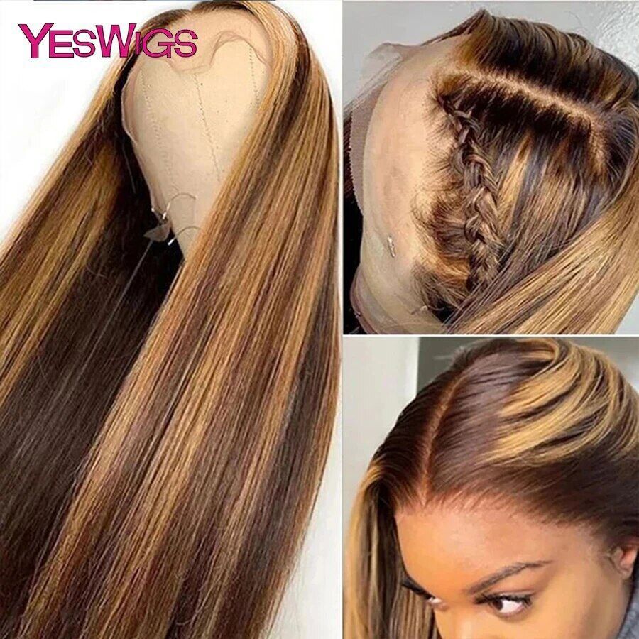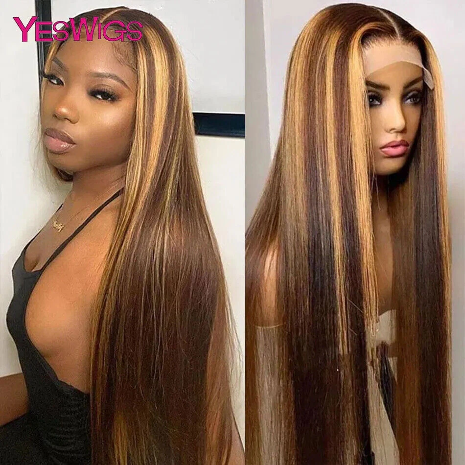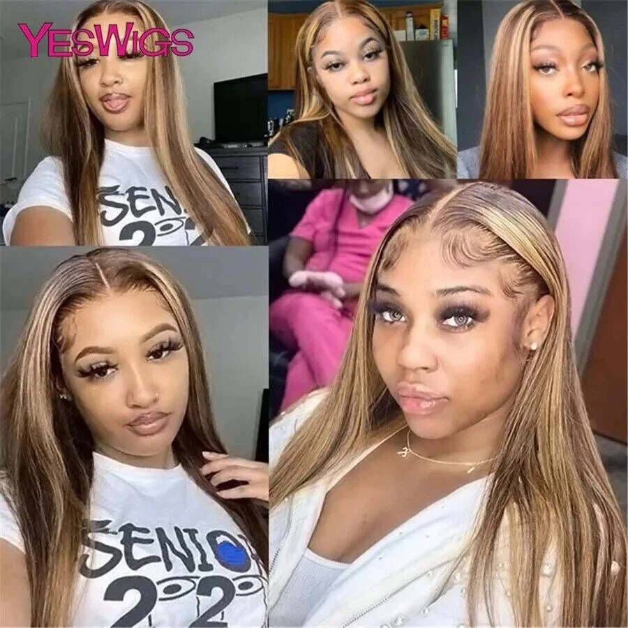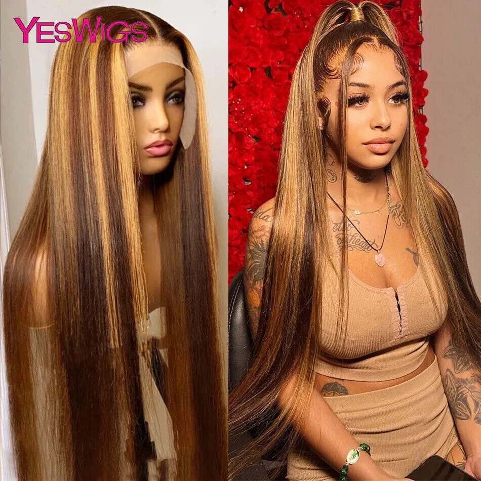 Highlight Wig Human Hair Ombre Honey Blonde Hd Lace Front Wigs For Women Brazilian 13x4 30 Inch Bone Straight Full Frontal Wig all for 1 real and free shipping