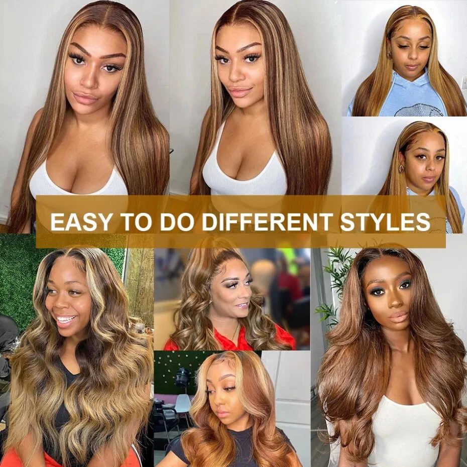 $ 46.67Reddish Brown HD Lace Front Wig with Preplucked Brazilian 4x4 Closure Human Hair