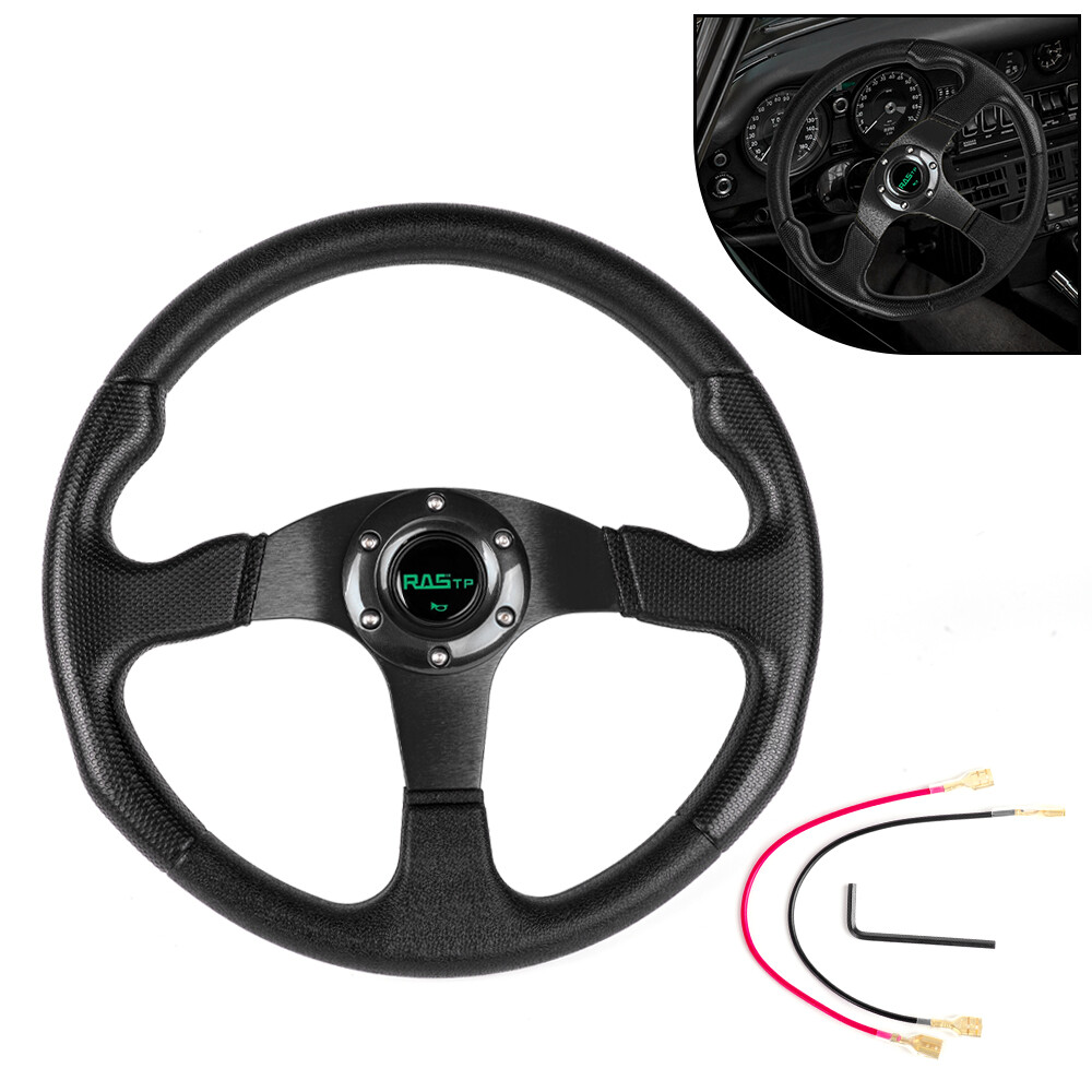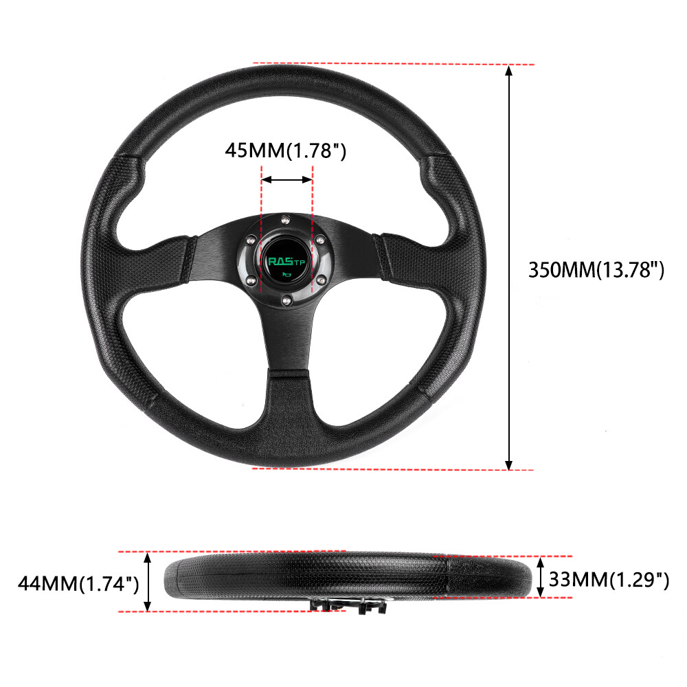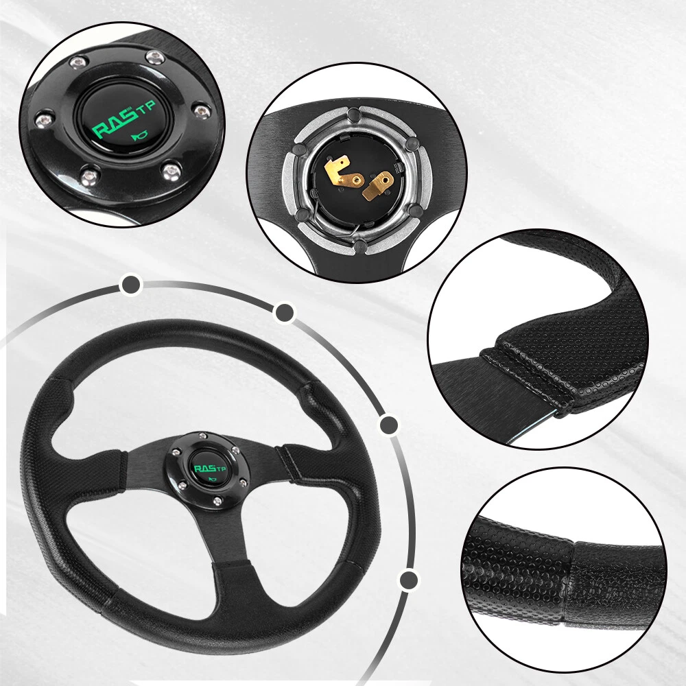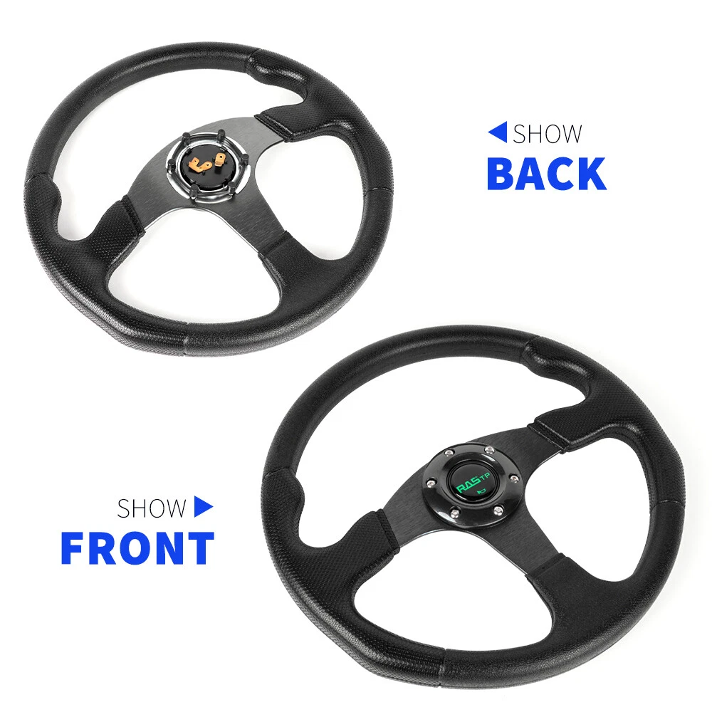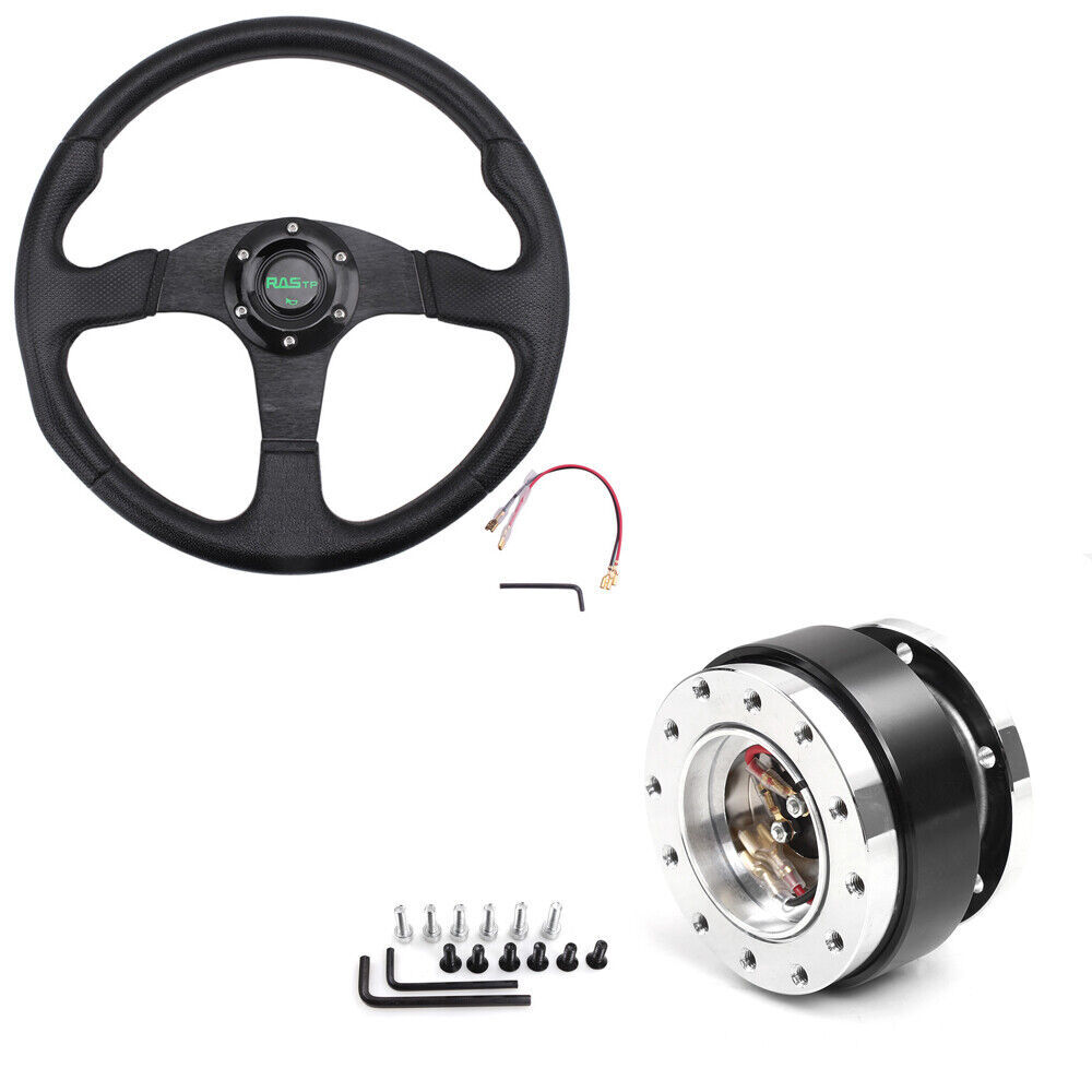 Quick Release Adapter Kit: Billet aluminum body, good bearing capacity, durable in using. With 6 long screws and 6 short screws for various snap off needs, ball-lock type mechanism for best locking fit and usability. Easy to operate, direct bolt-on, fast detach allows steering wheel to be removed quickly. Compatible with 6-hole steering wheel hub kit, designed for many aftermarket racing steering wheel. Package include only a steering wheel and a quick release adapter, must be installed with hub adapter (not include, need purchase separately). Color:Black Steering wheel: Application: Universal Fits 6-Hole Adapters Color:Black Material: Aluminum & PU Size:13.7inch/ 350mm Package Included: 1 x Steering Wheel 1 x Quick Release Adapter Payment Delivery details Return Policy About us Contact us Payment We will only ship to eBay confirmed shipping addresses. It is buyer responsibility to provide correct shipping address before purchasing. Buyer is responsible for any reshipping cost due to wrong or undeliverable addresses. Delivery details Items are shipped within 1-2 business days of receiving payment verification. Domestic shipping fees are applied to the lower 48 Continental States only (AK, HI, GU, PR, VI, Base Addresses, may require additional shipping cost) Please e-mail us for a shipping quote. INTERNATIONAL shipping available through eBay's global shipping. But Buyer might pay some VAT and Duties; seller is no responsible with any VAT and Duties. Deliveries are generally done within 3-5 business days nationwide and 10-20 days worldwide. Damaged item due to shipping must reported to us within 48 hours of delivery in order to place claim with shipping company. Return Policy No returns or exchanges once item has been installed, used or modified. We will exchange the item only if is defective or if customer receive the wrong parts. Returns and/or exchanges must be done within 30 days from delivery date. All returns and/or exchanges must be in brand new/uninstalled condition. About us Always Free Shipping with your Parts orders. Lowest price on brand new, in-the-box auto parts. Business time is Monday - Saturday 8:30 am to 5:30 pm HKT except all Holidays. Contact us Always Free Shipping with your Parts orders. Lowest price on brand new, in-the-box auto parts. Business time is Monday - Saturday 8:30 am to 5:30 pm HKT except all Holidays.